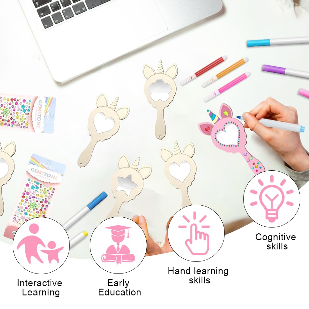 • 【EINHORN-HOLZSPIEGEL-BASTELSET】Dieses sorgfältig zusammengestellte Einhorn-Holzspiegel-Bastelset enthält 12 geschnitzte, unbemalte Einhorn-Holzspiegel (Spiegel in 4 Formen mit Schutzfolie auf der Oberfläche), 20 Aquarellstifte, 3 Paillettenaufkleber und eine große Menge exquisiter Stile, die Sie individuell gestalten können Lieblingsspiegel aus Holz, sehr gut geeignet für Eltern-Kind-Aktivitäten, damit Sie Ihren Kindern näher kommen können.