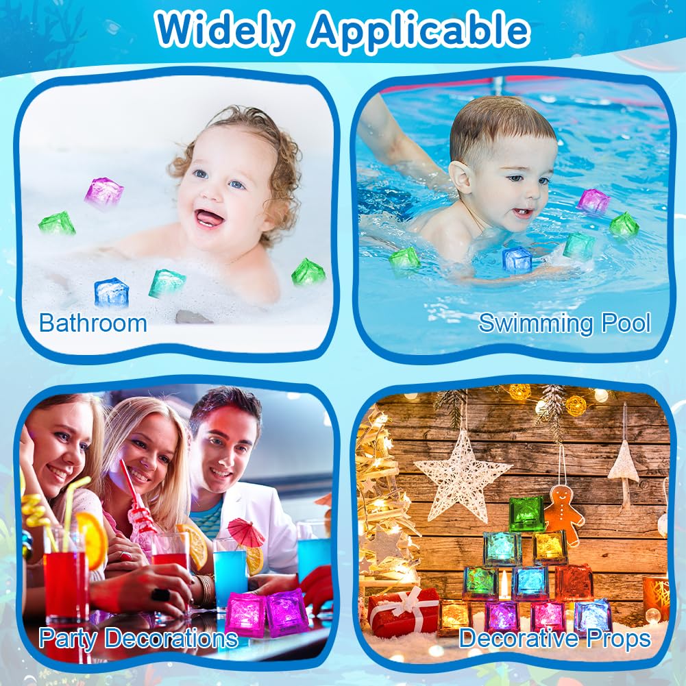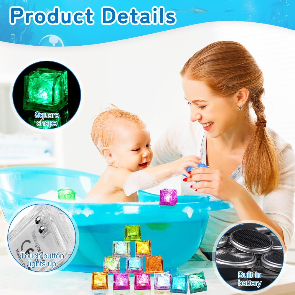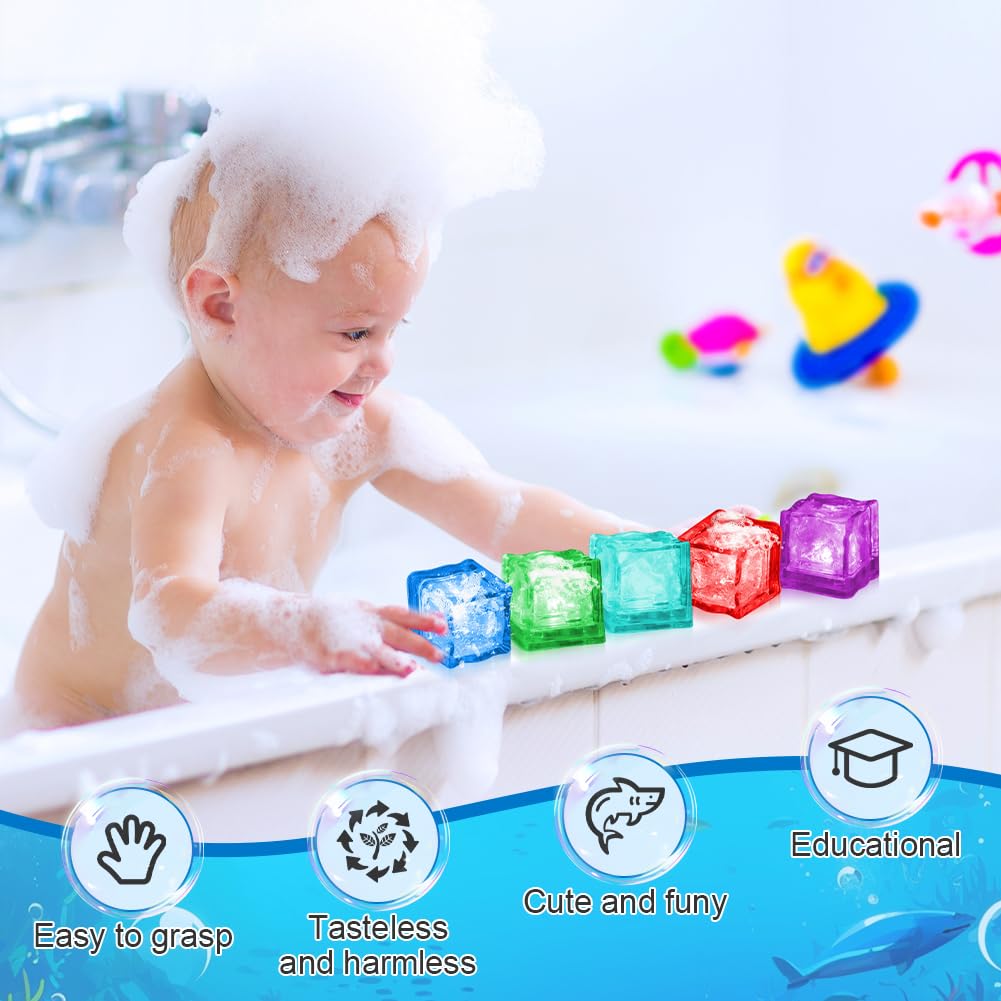 - 【Vielseitig Einsetzbar】 Diese niedlichen Badespielzeuge mit bunten Lichtern eignen sich als Geschenk für Kindergeburtstage, als Geschenktüte, als Osterkorbfüller, für Babypartys, als Karnevalspreise oder als Badezimmerdekoration. Kinder können nicht nur in der Badewanne, sondern auch auf dem Wassertisch, im aufblasbaren Mini-Pool, im Schwimmbecken und am Strand spielen. Die LED-Eiswürfel können Getränken oder Cocktails hinzugefügt werden, um eine romantische Atmosphäre zu schaffen.