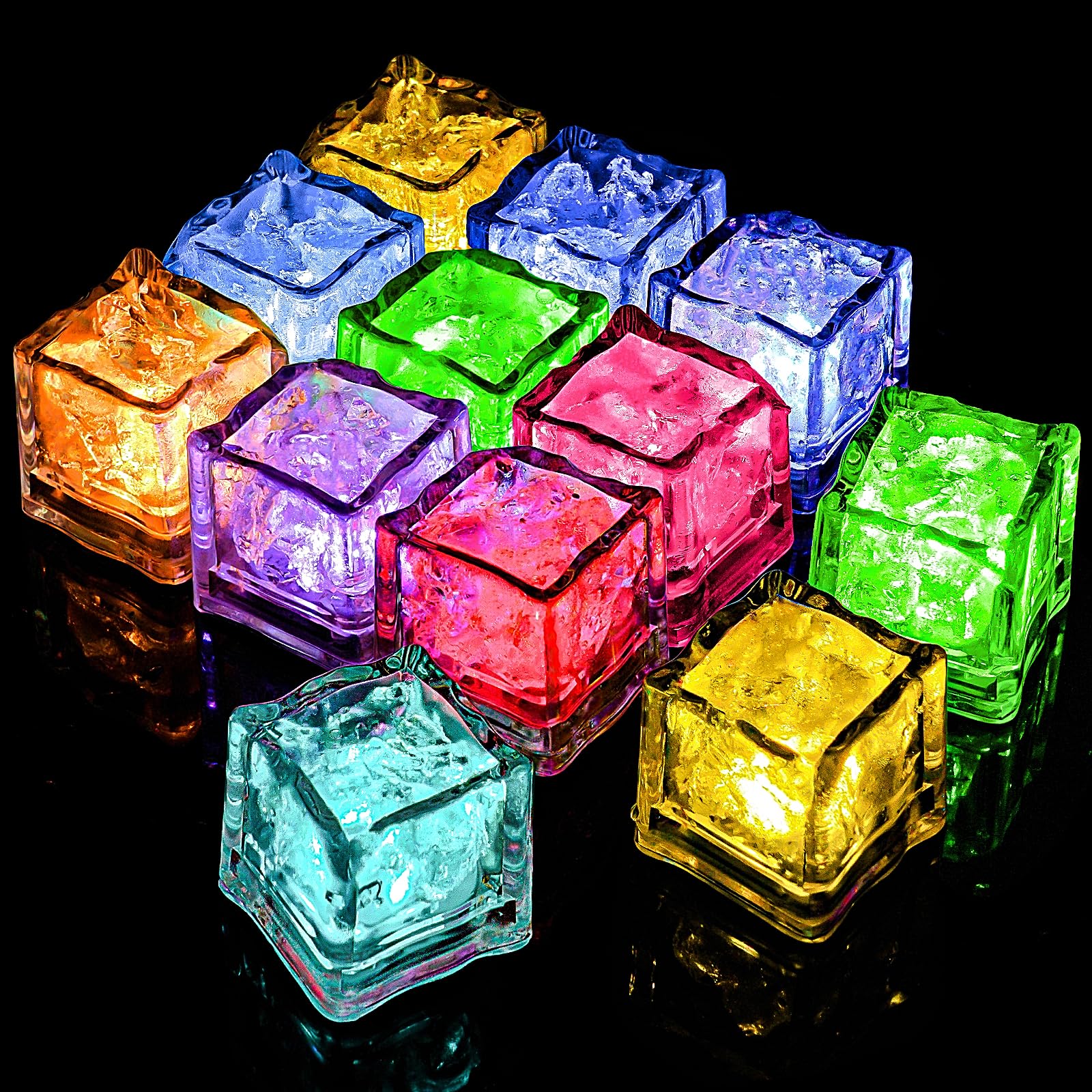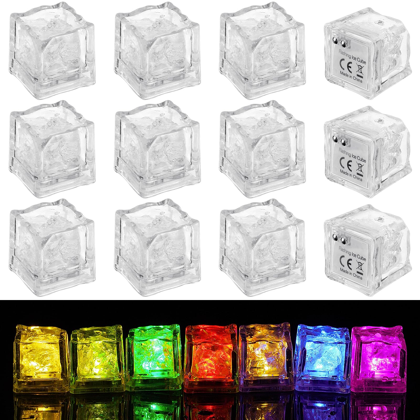 - 【Super-Sparpaket】 Sie erhalten 12 supergünstige schwimmende, blinkende Badespielzeuge. Jeder Eiswürfel leuchtet 8–25 Stunden oder länger ununterbrochen (Hinweis: Die Batterie ist nicht austauschbar, und der Eiswürfel erlischt, wenn die Batterie leer ist). Wenn die Eiswürfel aktiv sind, erzeugen sie bunte Lichtfarben wie Rot, Gelb, Blau, Grün, Lila, Pink usw., die die Aufmerksamkeit von Babys auf sich ziehen und ihnen Freude am Baden bereiten.