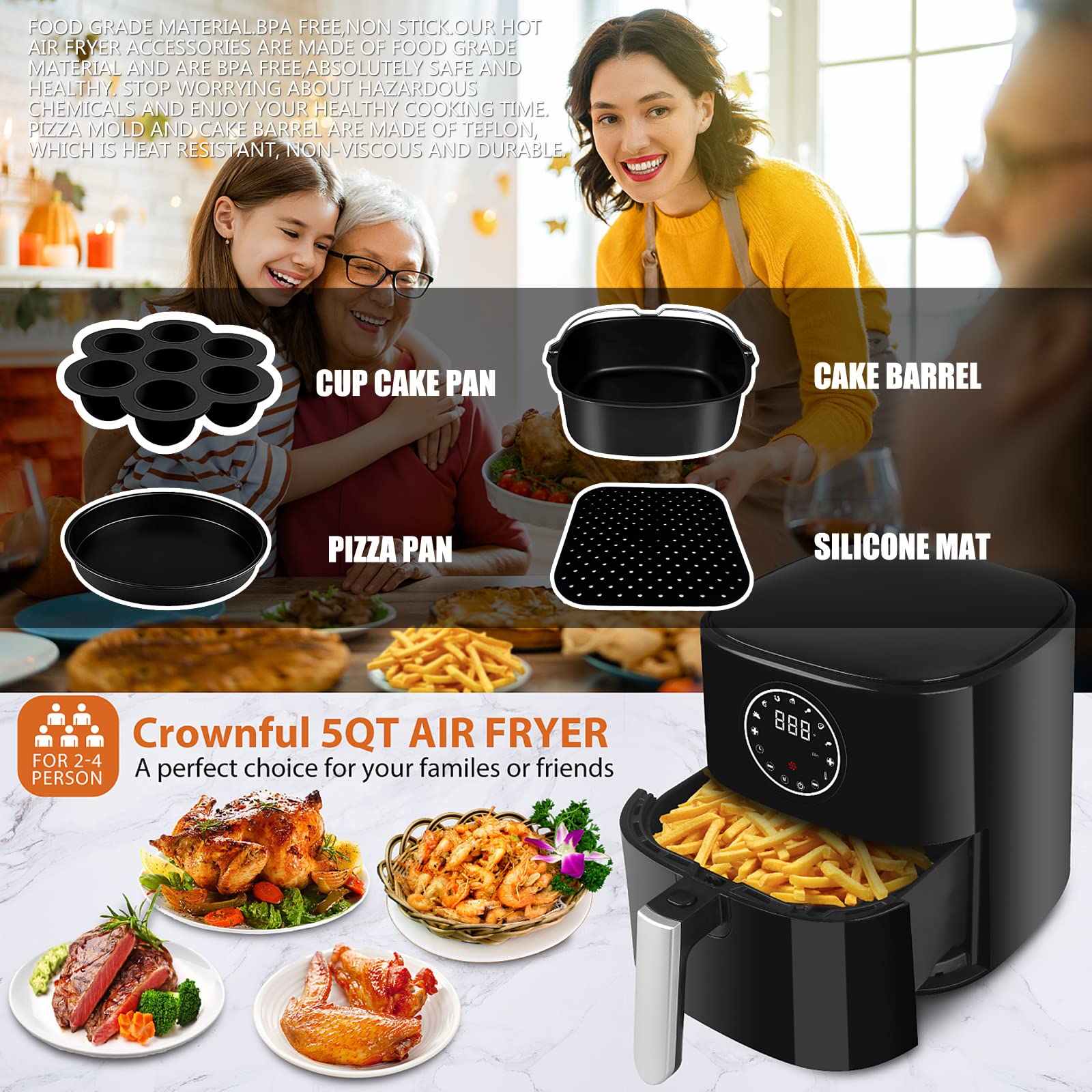 • SICHERE UND GESUNDE MATERIALIEN - Unser Heißluftfritteusen-Zubehör besteht aus BPA-freien Materialien, wodurch es sicher und gesund ist, gesunde Kochzeiten zu genießen, ohne sich Gedanken über gefährliche Chemikalien machen zu müssen. Auch die Pizzapfanne und die Kuchenpfanne bestehen aus PTFE, das hitzebeständig, antihaftbeschichtet und langlebig ist.