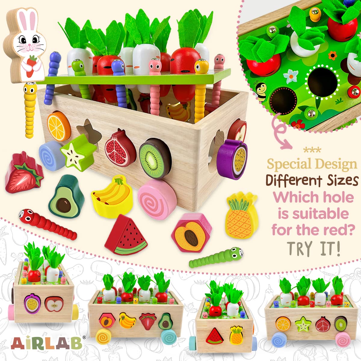 - 7-IN-1 FRÜHES LERNSPIELZEUG: Airlab multifunktionales Holzspielzeug bietet 7 verschiedene Spielmöglichkeiten. ( Radieschen Ziehen, Hasenfangwürmer, Farberkennung, Obsterkennung, Formanpassung, Lagerung und Sortierung, Karren ) Vielfältige Spielweisen, um den unterschiedlichen Bedürfnissen der Kinder gerecht zu werden. Lassen Sie Ihr Kind Spaß haben und spielerisch heranwachsen