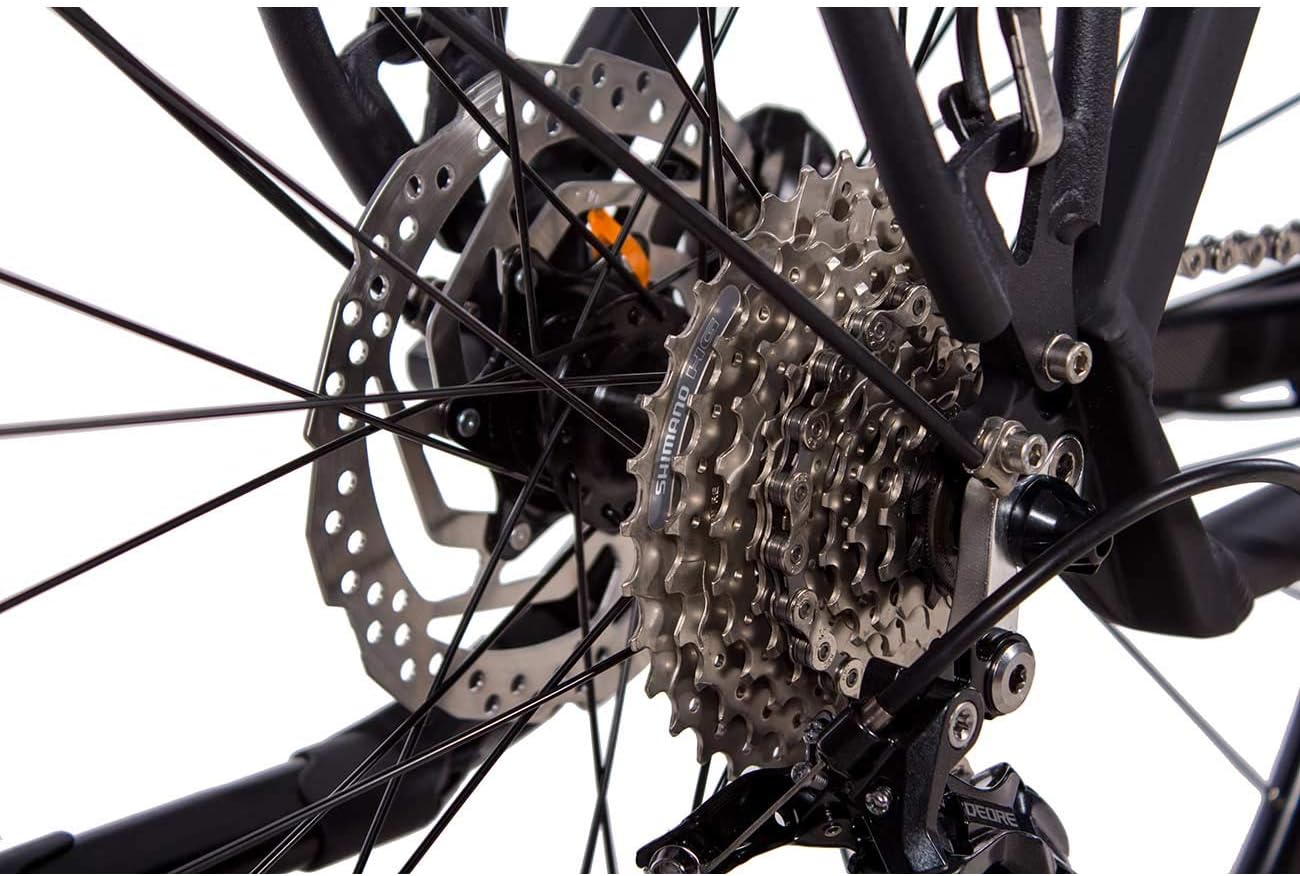 • Regen und Schmutz? Kein Problem! Hier bekommst du tolle gleich wie den Rahmen gefärbte Aluminium Schmutzfänger. Für optimale Sicherheit hast du aufs Board noch die kraftvollen hydraulischen Scheibenbremsen Shimano Altus BL-MT200. Für Vielfahrer sind die Scheibenbremsen die richtige Wahl, da die Felgenflanken durch das Bremsen nicht verschließen werden.