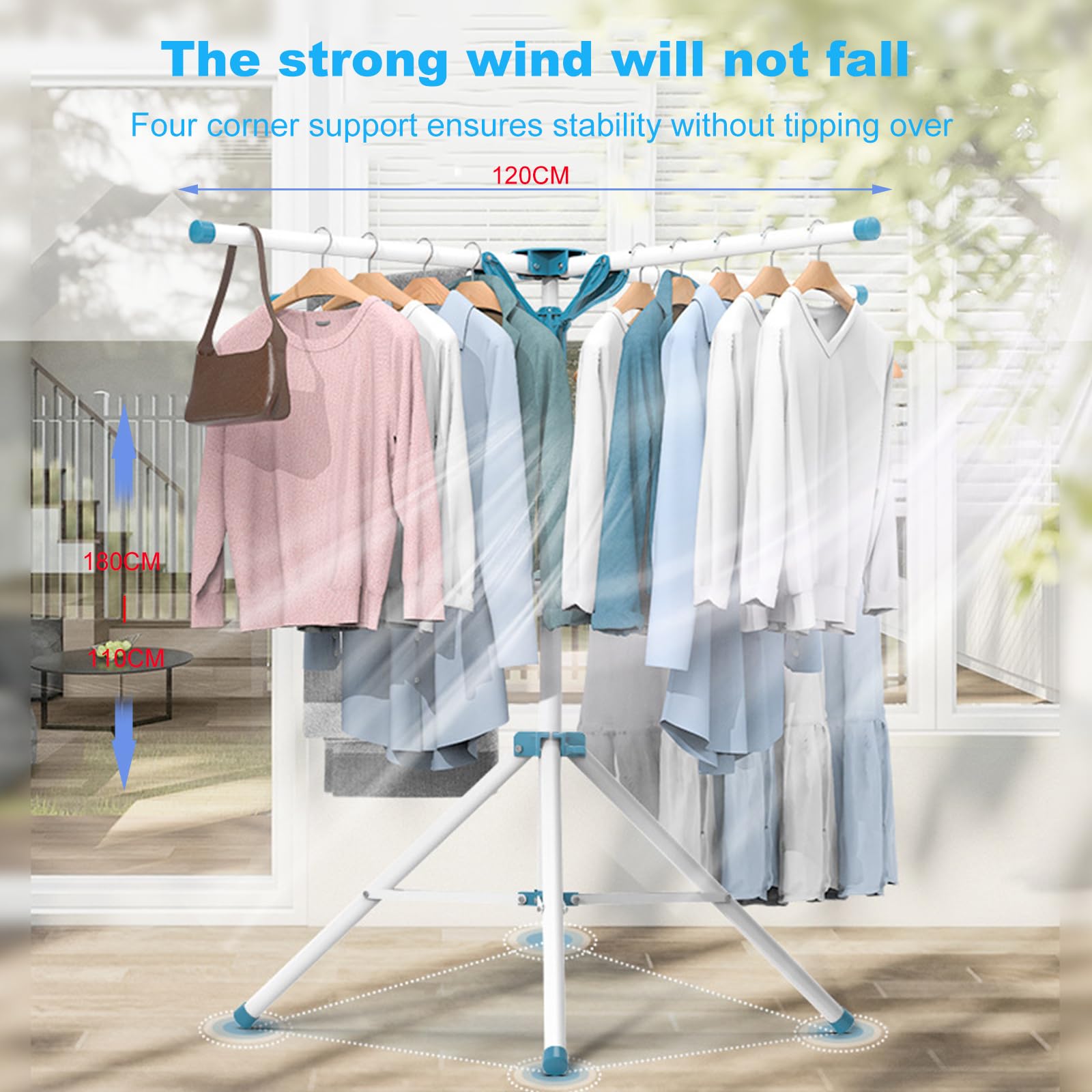 Einzelheiten: ?Starke und langlebige Bügelwäscheständer?Hergestellt aus verdicktem legiertem Stahl, kann es bis zu 80kg Kleidung und Steppdecke, super Tragfähigkeit tragen. AISIR Wäscheständer ist leicht, kratzfest, langlebig, korrosions-und rostfrei und hat einen;?Einziehbare 4-Arme Standtrockner ?Die 4-Arme können geöffnet von 1 bis 4 wählen; Die Höhe dieses Airers ist einstellbar von 110 bis 180cm; Tretlager ist auch einstellbar Breite als unser Raum.;?Faltbar&Splatzsparend?Der faltbare Wäscheständer steht bei 120 x 120 x 110/180 cm während des Gebrauchs, das einzigartige Design ermöglicht es Ihnen, die meisten Ihrer Kleidungsstücke aufzuhängen. Lagergröße: 11 x 11 x 100 cm, platzsparend;?Keine Notwendigkeit zu installieren?Muss nicht installiert werden, nur drei Schritte zu öffnen:1. Stützen Sie die unteren Beine; 2. Verbinden Sie die oberen und unteren Stäbe; 3. Öffnen Sie die Oberarme.;?Breite Anwendung?Der Wäscheständer ist perfekt für den Innen- und Außenbereich. Sie können es auf Ihrem Balkon, Bad, Waschküche, Veranda platzieren.