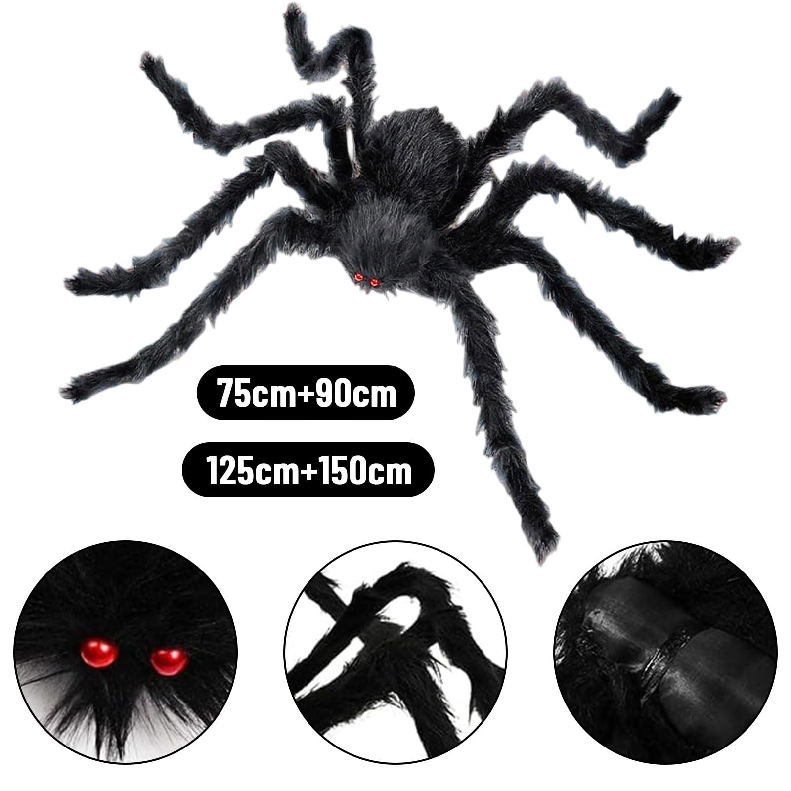 Ajuanbazha 2 Stück Halloween Spinnen, Gruselige Plüschspinnen, Realistische Halloween Dekoration für Partys, Garten und Spukhäuser (75cm+90cm)