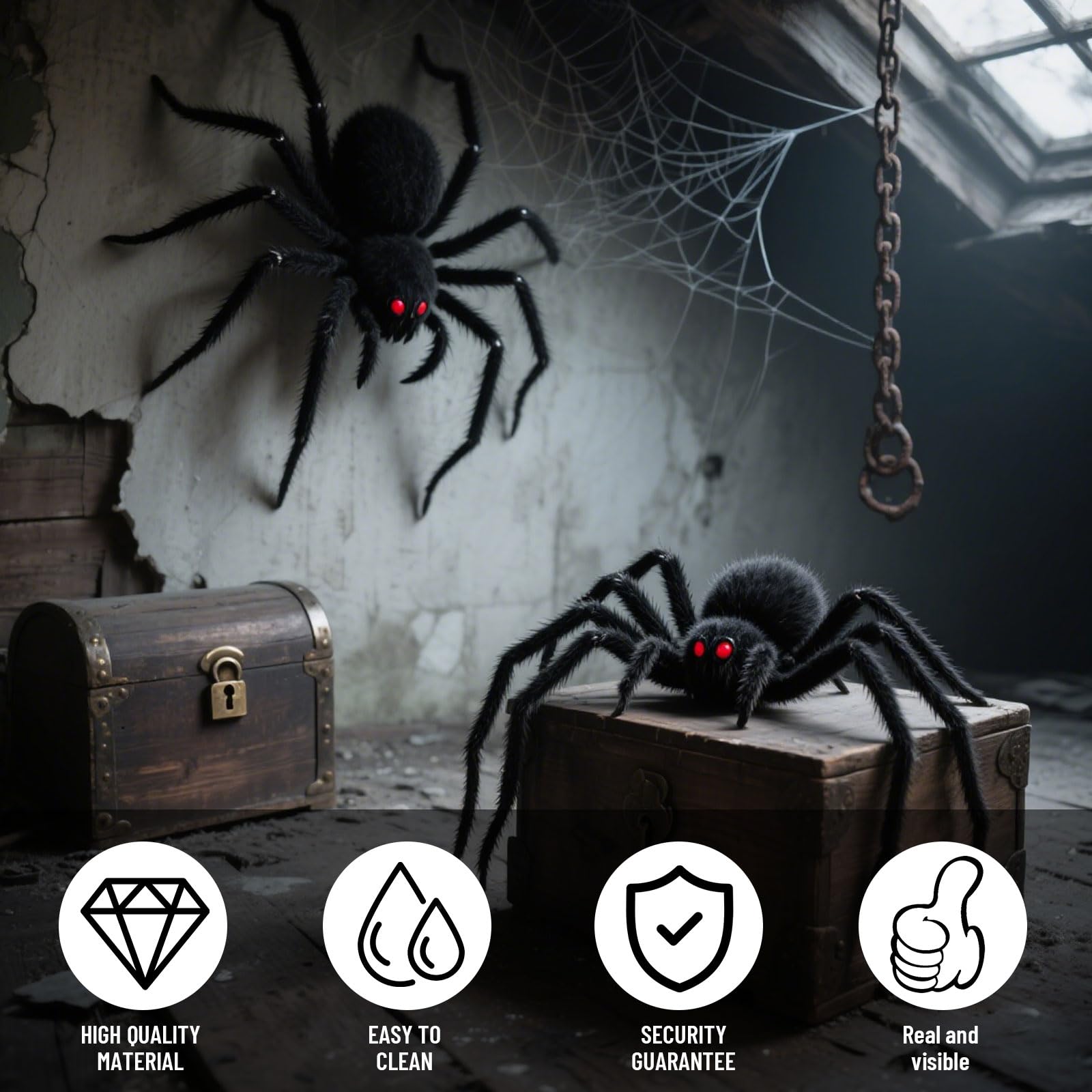 • 【Realistisches Design】 Mit schwarzen Körpern, langen Beinen und leuchtend roten Augen wirken die Deko-Spinnen täuschend echt und sorgen für eine gruselige Atmosphäre.