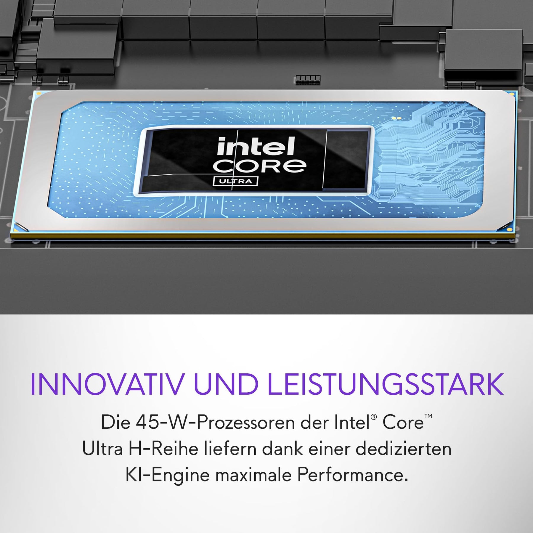 - INNOVATIV UND LEISTUNGSSTARK: Die 45-W-Prozessoren der Intel Core Ultra H-Reihe liefern dank einer dedizierten KI-Engine maximale Performance.