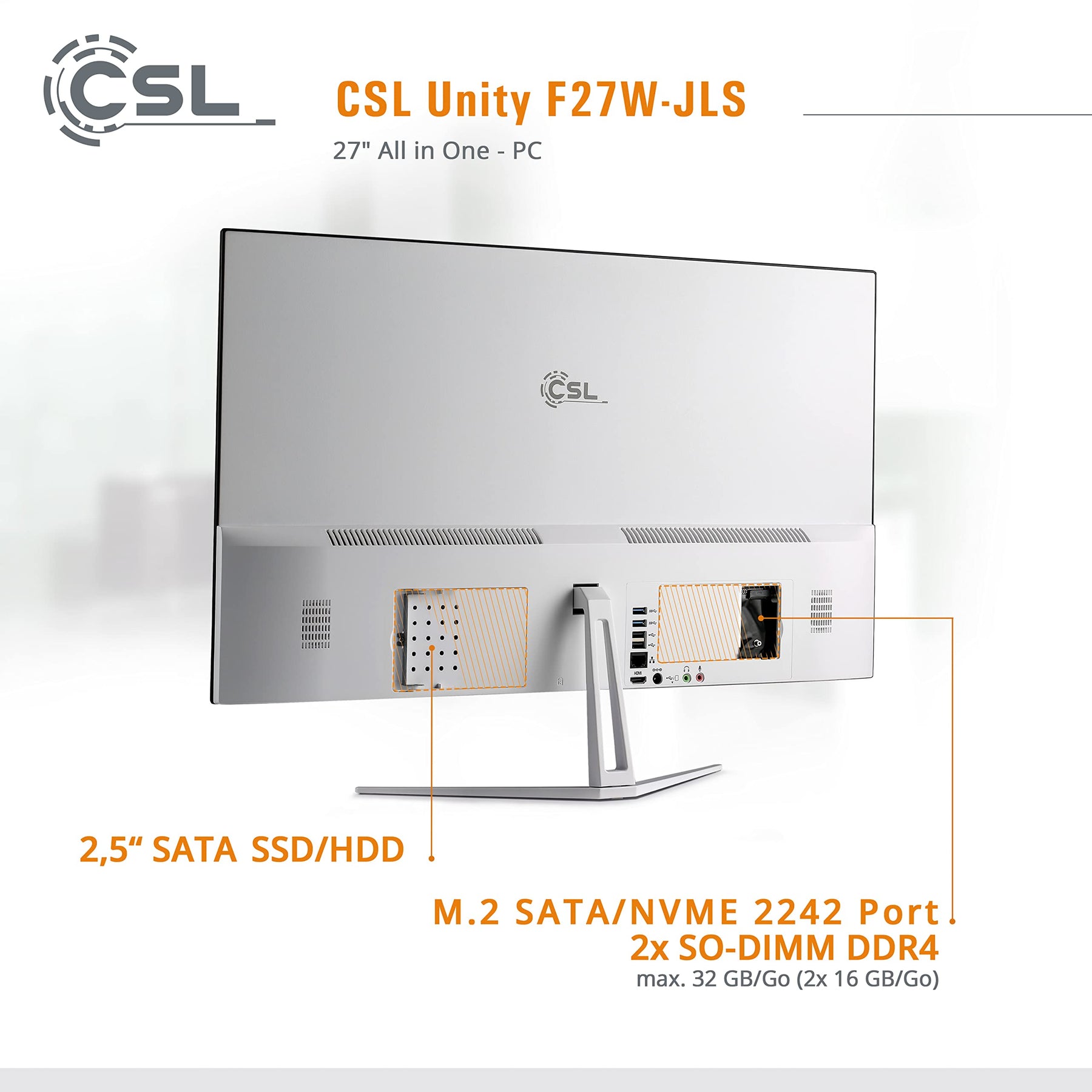• Der CSL Unity F27W-JLS ist ein eleganter, leistungsstarker All-In-One Desktop-PC. Seine Ausstattung bietet eine starke Grundlage für alle gängigen Office-Anwendungen, hochauflösendes Media-Streaming und Casual Gaming. Das im Lieferumfang enthaltene Maus- und Tastatur-Set sorgt außerdem für einen reibungslosen Einsatz im Home Office.