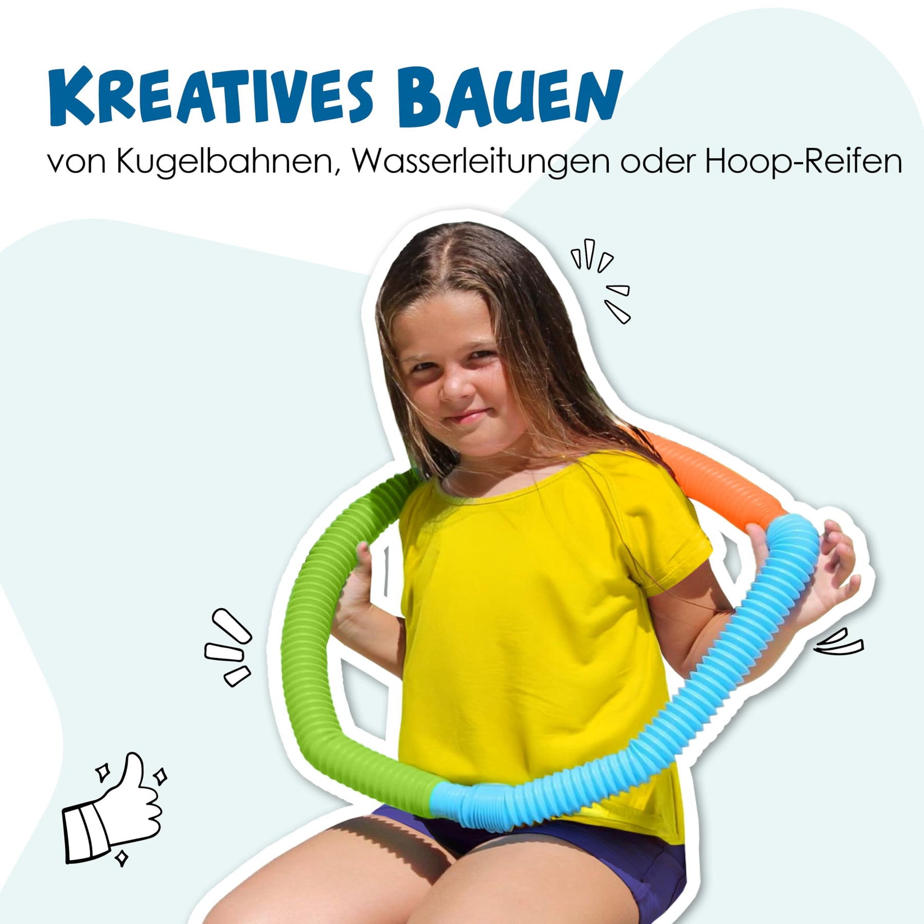 • Flexibel & vielseitig - Dank Steckverschlüssen an beiden Enden lassen sich die Röhren (Ø 3 cm) verbinden. So entstehen Konstruktionen wie Kugelbahnen, Ringe, Armbänder oder fantasievolle Spielideen