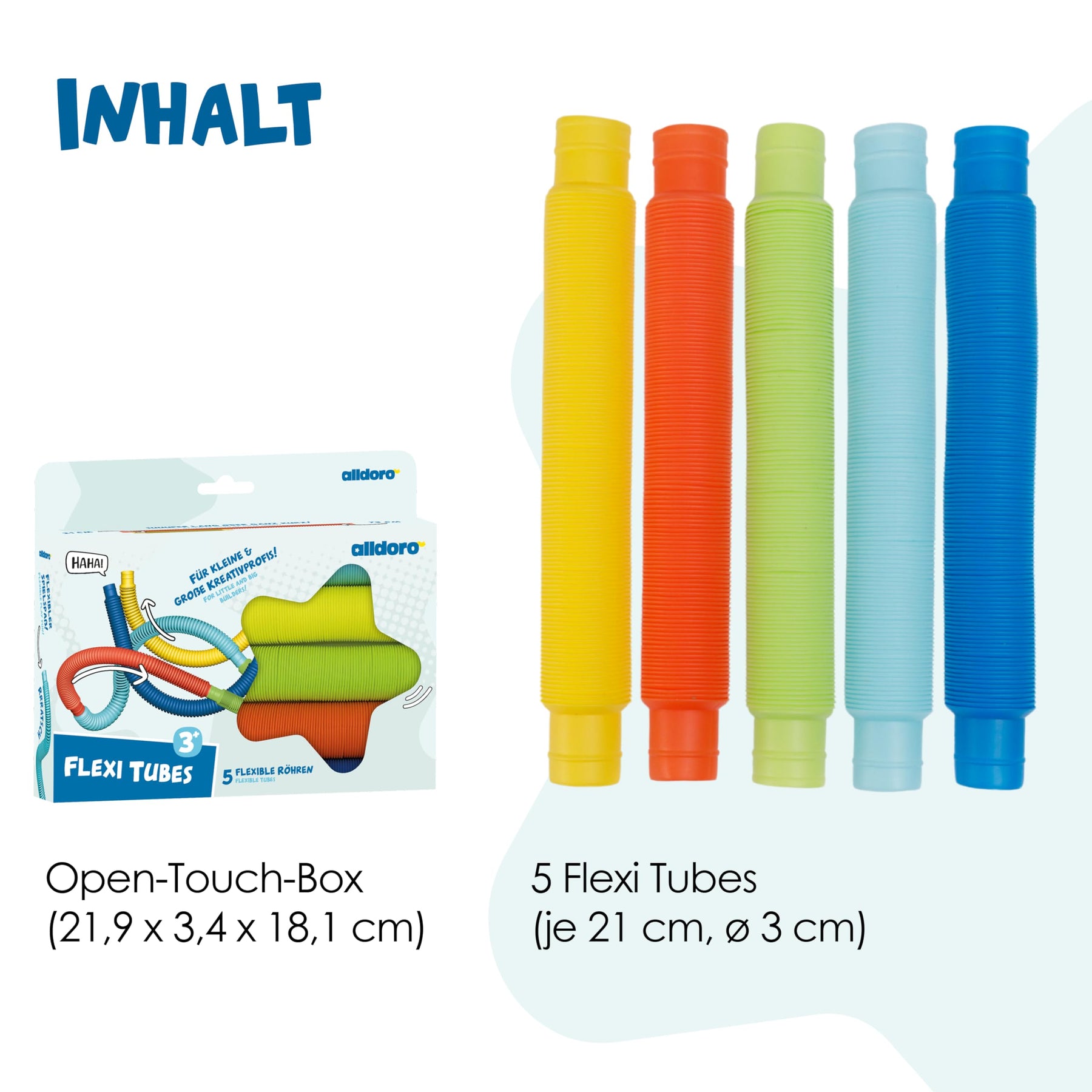 alldoro 60332 Flexi Pop Tubes, 5er Set, ausziehbares Fidget Spielzeug von 21-73 cm, buntes Motorikspielzeug ab 3 Jahren