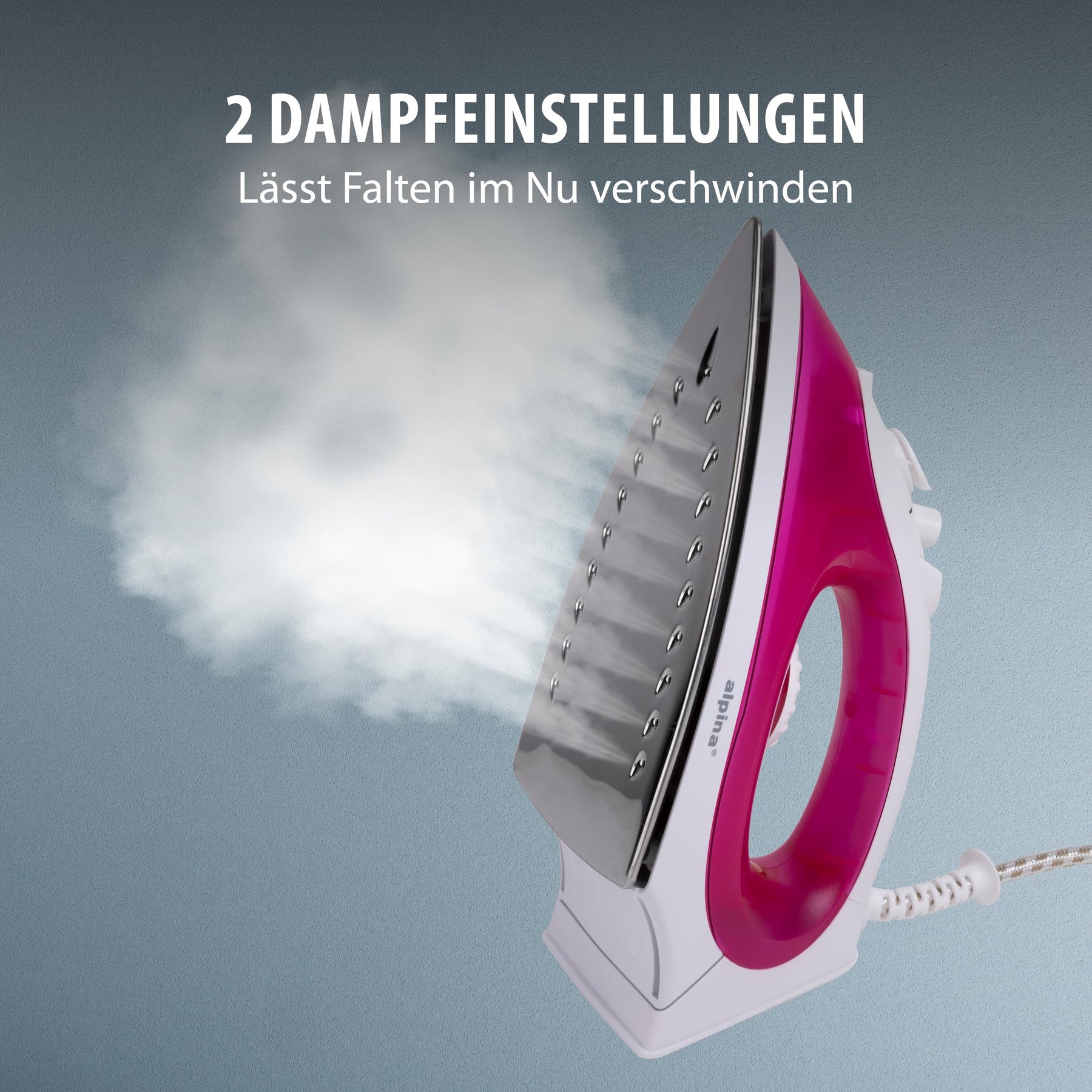 alpina Dampfbügeleisen - Dampfglätter 2000W - Bügeleisen mit Dampf- und Wassersprühfunktion - Einstellbare Temperatur und Wassertank 120ml - Edelstahlsohle - Rosa/Weiß