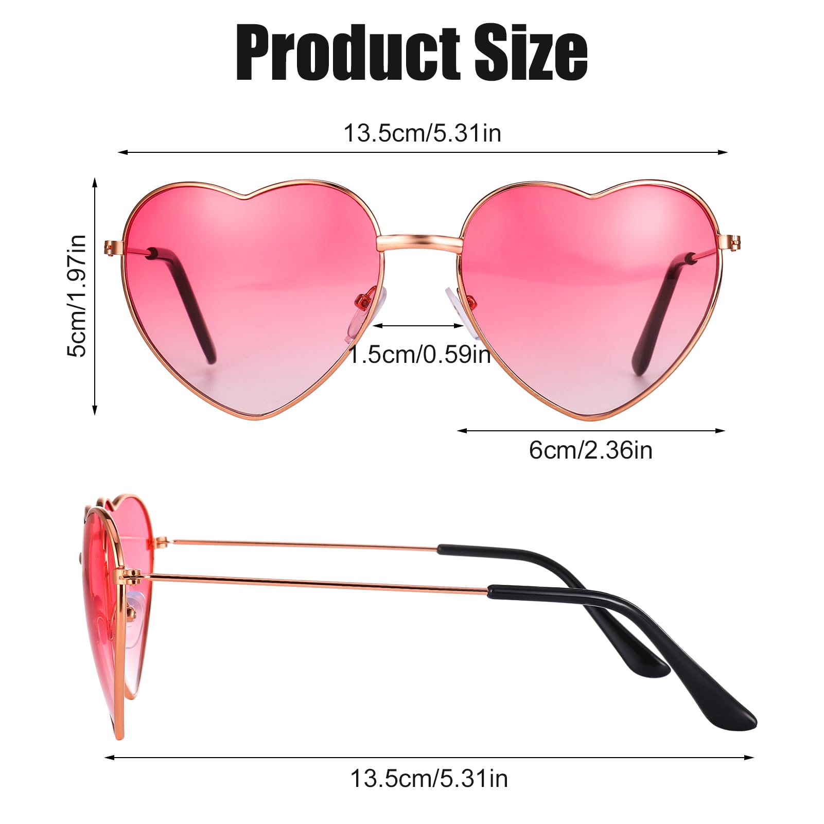 • Stilvolles Design: Die Herz-Sonnenbrille verfügt über ein stilvolles und trendiges Design, das Ihrem Erscheinungsbild einen Hauch von Stil verleiht.