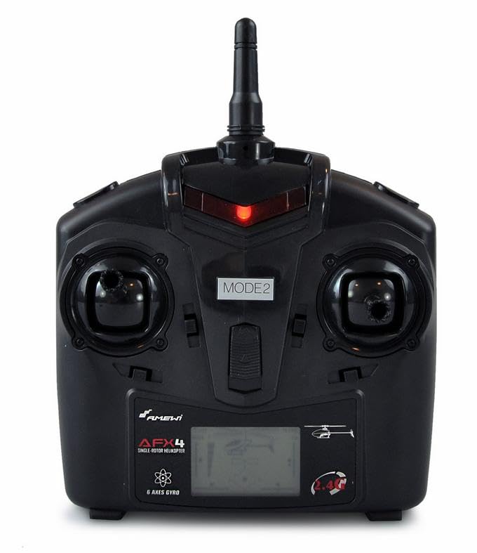 Ein perfekter Heli für den Einstieg in die Welt des Helikopterfliegens. Zeitlose, schöne Optik. Dank seiner eigenstabilen Flugeigenschaften eignet sich dieses tolle Modell ebenso für den Umstieg von Koaxial- zu Singleblade Helis. Ausgeliefert wird der AFX4 mit der gängigen Mode 2 (Gas links) Belegung, sodass sich die allermeisten Piloten nicht weiter umzustellen brauchen. Durch den integrierten 6-Achsen Gyro und durch die Wegebegrenzung der Servos lässt sich das Modell sehr gut kontrollieren und ermöglicht einen sehr stabilen Schwebeflug. Zusätzlich ist das Modell selbststabilisierend. Die Funkfernbedienung verfügt über einen Zusatzknopf, um den Heli wieder in eine stabile Ausgangslage (Schwebemodus) zu bringen. Die Nick- und Rollbewegungen (vor/zurück, rechts/links) sind herstellerseitig so reguliert, dass sie einen angehenden Piloten vor keine größeren Schwierigkeiten stellen. Sollte doch einmal etwas mehr Leistung nötig sein, z.B. Outdoor bei stärkerem Wind, sorgt ein Dualraten-Schalter am Sender für mehr Servoweg als Unterstützung. Mit etwas Übung sehr flüssig und schnell zu bewegen, eignet sich dieser Heli wunderbar als Trainingsmodell für kleinere Räume oder Hallen. Die Flugzeit variiert je nach Umgebung zwischen 4 - 6 min.