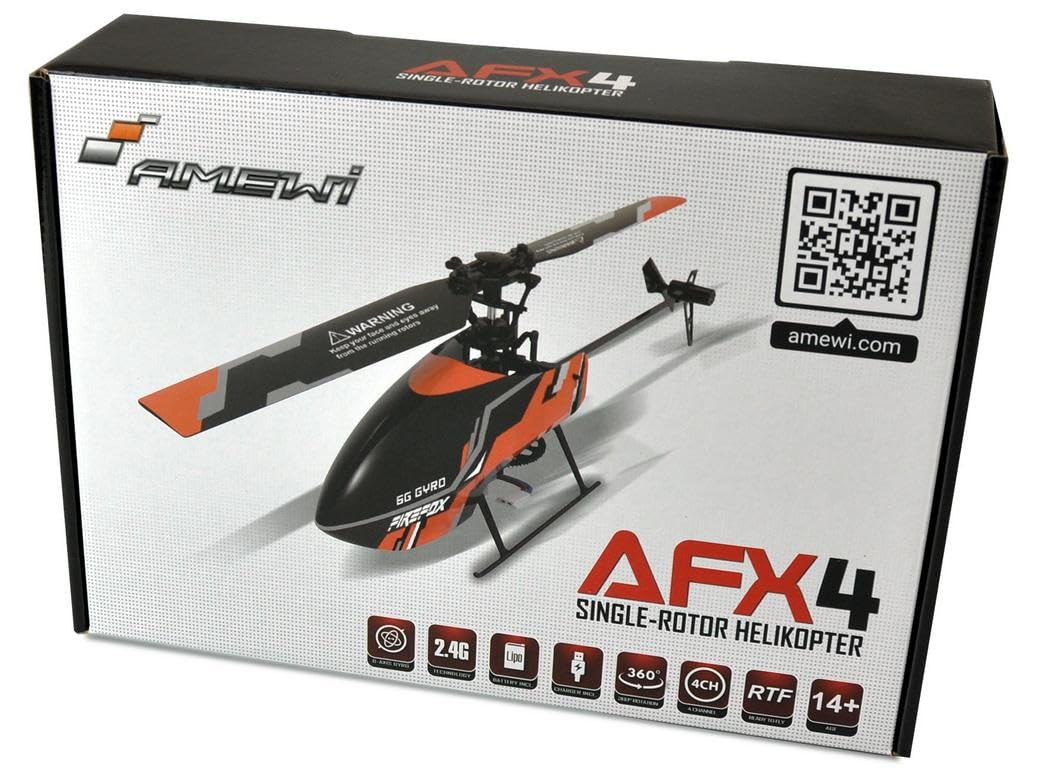 Amewi 25312 AFX4 Single-Rotor Helikopter 4-Kanal 6G RTF 2,4GHz RC Hubschrauber, Schwarz-orange