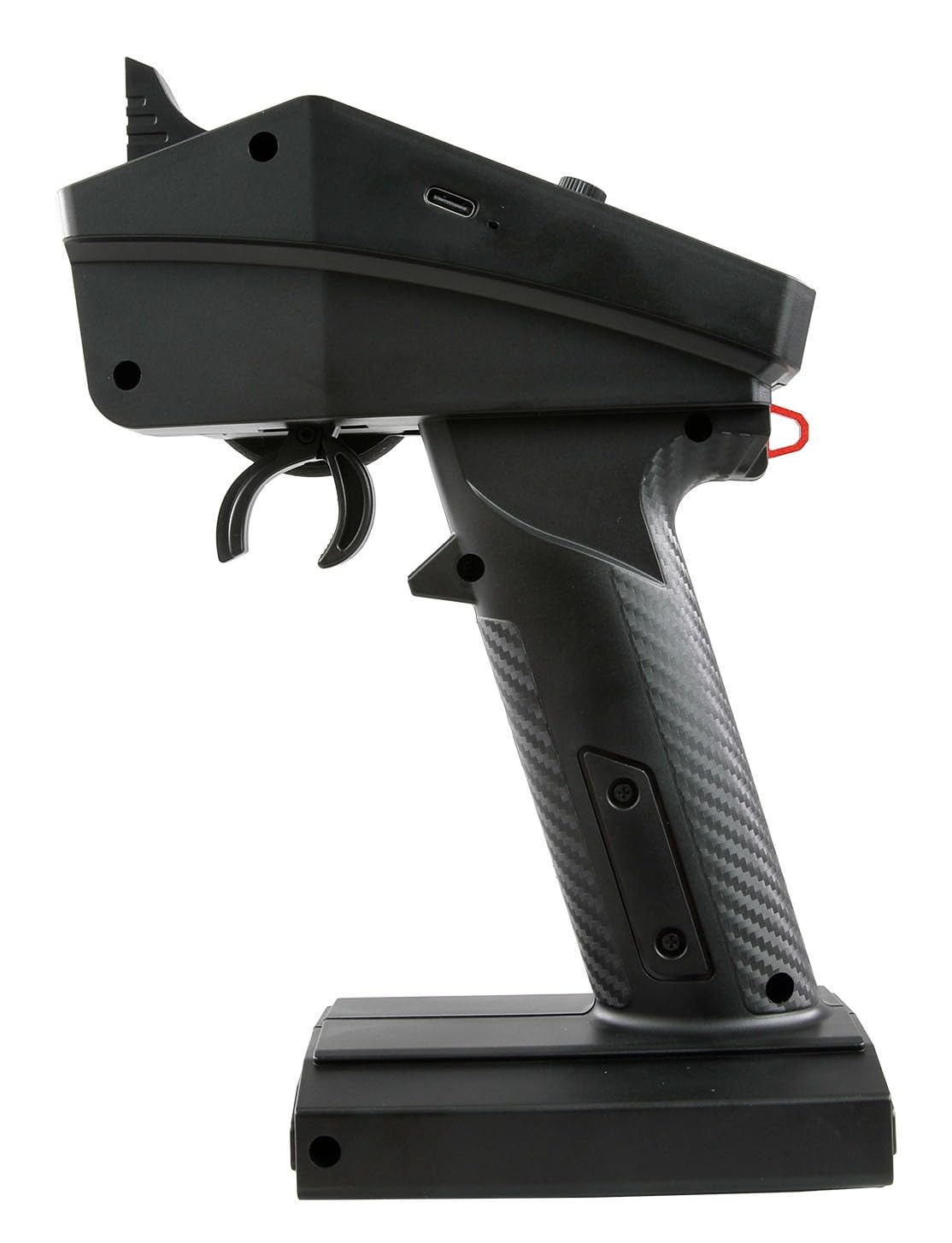 Einzelheiten: Die Pistolenfernsteuerung ATXB6 ist ein 6-Kanal Fernsteuerungssystem mit herausragenden Preis-Leistungs-Verhältnis. Sie bietet umfangreiche Programmierfunktionen für alle Kanäle und dank integrierter Mischfunktionen können zusätzlich Kanal 1+2 oder Kanal 5+6 kombiniert und als ein Kanal genutzt werden. Das Fernsteuersystem verfügt außerdem über eine Telemetrie-Funktion, die die Akkuspannung des Modells oder die Stromversorgung des Empfängers in Echtzeit auf dem Display anzeigt. Eine Dual-Rate-Funktion für Gas und Lenkung erweitert die Anpassungsmöglichkeiten. Die Servorichtung für Lenkung und Gas ist umkehrbar, und für eine komfortable Einhandbedienung ist ein zusätzlicher Hebel am Lenkrad angebracht. Über den USB-C-Anschluss lässt sich das System aktualisieren oder für Simulatoren nutzen. Die Steuerung bietet folgende Bedienelemente: Gas, Lenkung, einen Drucktaster am Griff (SWB), einen Drei-Wege-Schalter über dem Griff (SWA) und zwei einfache Taster auf der Oberseite. Digitale Trimmung sorgt dafür, dass alle Einstellungen erhalten bleiben, auch wenn die Fernbedienung ausgeschaltet wird. Ein besonderes Highlight ist der Hybridmodus, mit dem zwei Steuerkanäle (1+2 oder 5+6) auf einen Empfängerkanal gelegt werden können. Zudem lassen sich die Servowege für die Kanäle 3, 4, 5 und 6 separat einstellen. Eine integrierte Schutzfunktion schaltet die Fernbedienung automatisch ab, wenn 15 Minuten lang keine Eingabe erfolgt. Eine Minute vor der Abschaltung warnt der Sender durch einen Piepton. Dieses System kombiniert innovative Funktionen mit hoher Bedienerfreundlichkeit und ist ideal für anspruchsvolle Anwendungen.