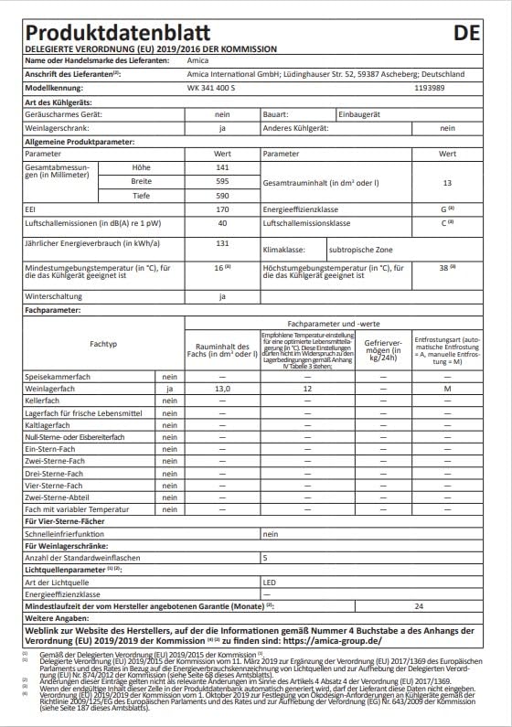 Modellnummer: WK 341 400 S