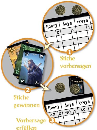 In diesem magischen Kartenspiel sagt ihr als Zauberlehrlinge vorher, wie erfolgreich ihr Stiche gewinnen werdet. Trefft die richtigen Vorhersagen und zeigt allen anderen, wer der weiseste Zauberlehrling ist. Edle Metallmünzen helfen euch, den Überblick zu bewahren. Eines der erfolgreichsten Stich-Kartenspiele in exklusiver Ausstattung!