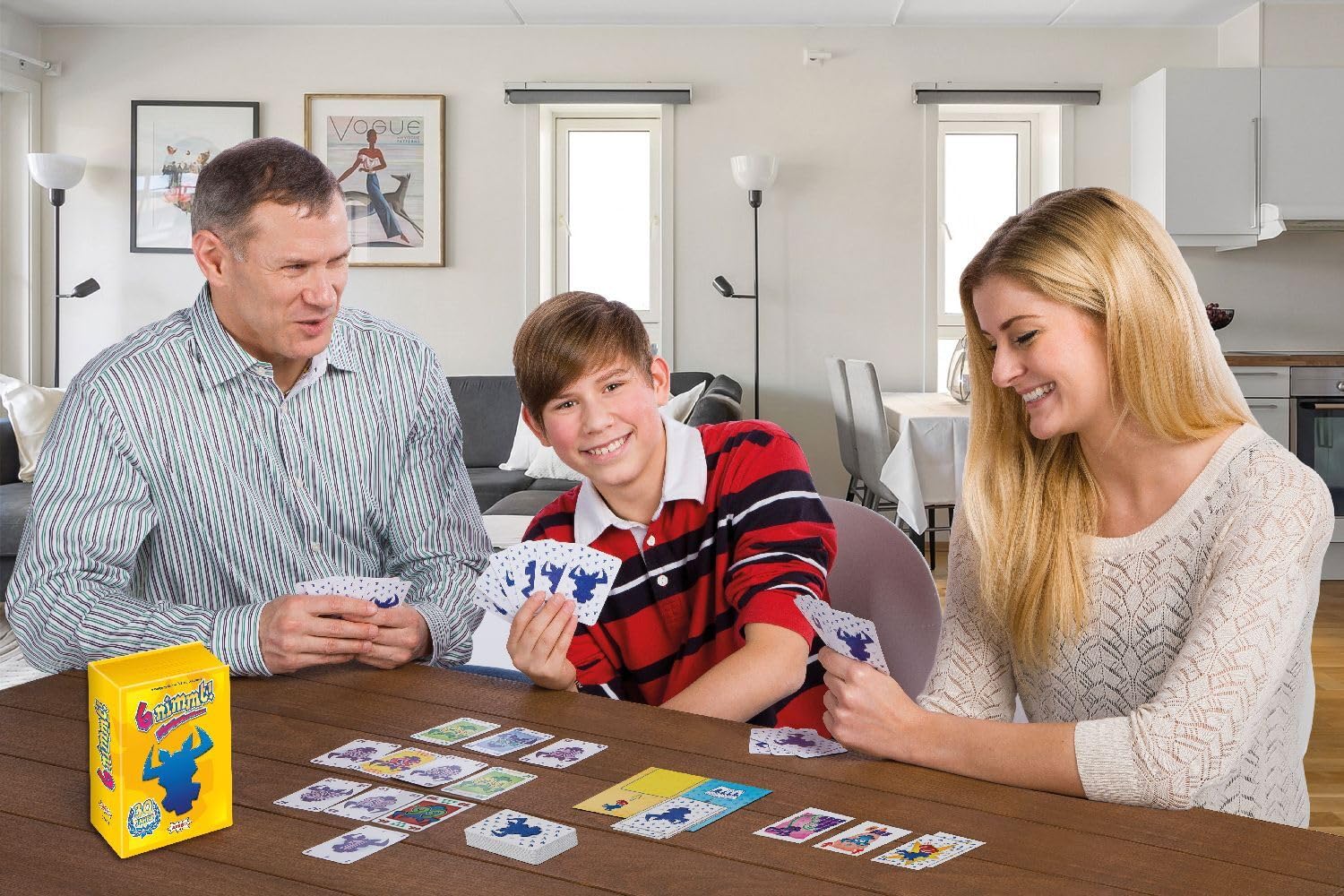 6 nimmt! 30 Jahre-Edition Seit 30 Jahren beweisen 6 nimmt!- Fans, dass sie keineswegs Hornochsen sind! Diese Jubiläumsausgabe bietet das bekannte Grundspiel sowie eine ganz neue, kooperative Variante. Dabei treten die Spielenden gemeinsam gegen den Büffel an und schieben ihm mithilfe der Sonderkarten fleißig die Minuspunkte zu. Vier zusätzliche Sonderkarten, von 6 nimmt!-Fans erdacht, bieten zudem noch mehr Abwechslung im Spiel! So spielt man 6 nimmt! 30 Jahre-Edition: Das steckt in der 6 nimmt! 30 Jahre-Edition: * 6 nimmt! Grundspiel: Das raffinierte Kartenspiel, für 2–10 Personen, bei dem die Spielenden ihre Karten möglichst schlau an vier Kartenreihen anlegen. Dabei gilt es zu vermeiden, die sechste Karte in eine Reihe legen zu müssen. * Schlagt den Büffel: Die kooperative Spielvariante für 1-6 Personen. Gemeinsam setzen die Spielenden clever die Sonderkarten ein, um sich nicht gegenseitig, sondern dem Büffel die Minuspunkte zuzuschieben. * Fan-Sonderkarten: Vier zusätzliche Sonderkarten, erdacht von 6 nimmt!-Fans, bringen noch mehr Abwechslung ins Spielvergnügen. Inhalt: * 133 Spielkarten * 1 Büffelablage * 1 Spielanleitung * 1 Block * 1 Stift * 1 Gummiband 6 nimmt! Maße: 16 x 12 x 5 cm Autor: Wolfgang Kramer Grafik: Franz Vohwinkel