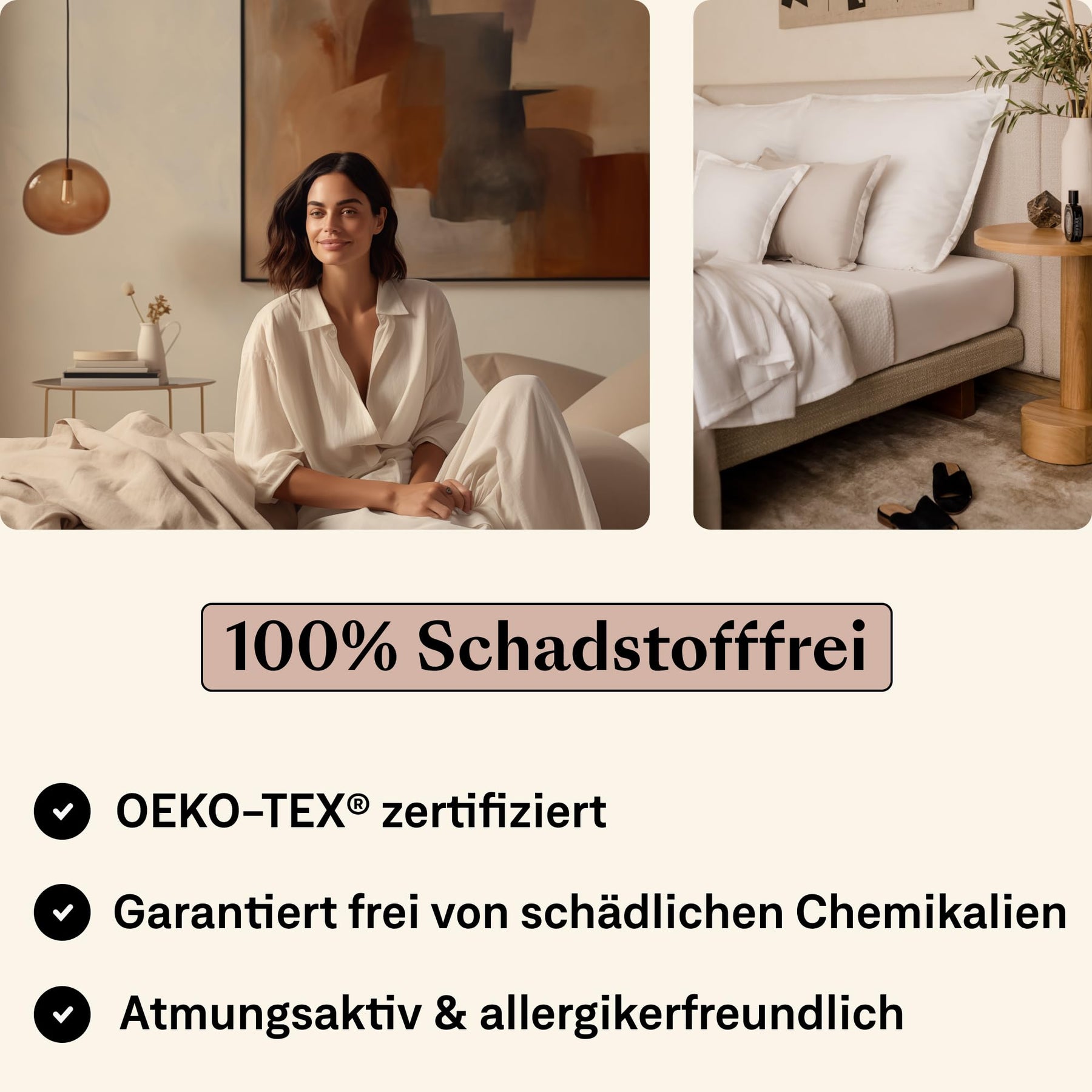 • SCHADSTOFFFREIE QUALITÄT FÜR IHRE GESUNDHEIT: Unser Amqua Kissenbezug ist OEKO-TEX zertifiziert, was garantiert, dass dieser frei von schädlichen Chemikalien und Schadstoffen ist. Das bedeutet, Sie schlafen nicht nur besonders weich und luxuriös, sondern auch gesund und unbesorgt. Genießen Sie das beruhigende Gefühl, dass Ihre Haut nur mit sicheren, hautfreundlichen Materialien in Kontakt kommt. Ideal für Allergiker und alle, die ein sicheres und schadstofffreies Schlafumfeld schätzen