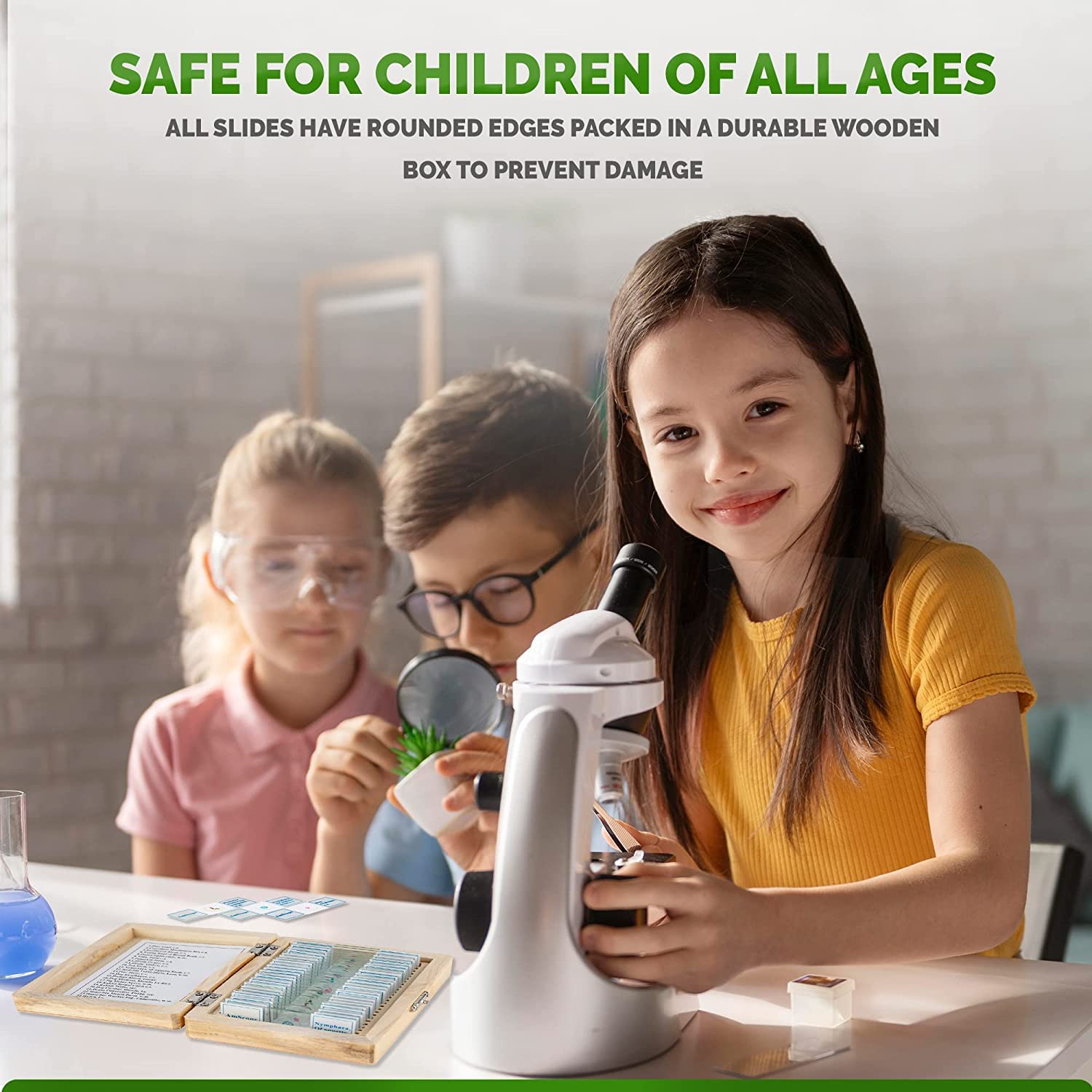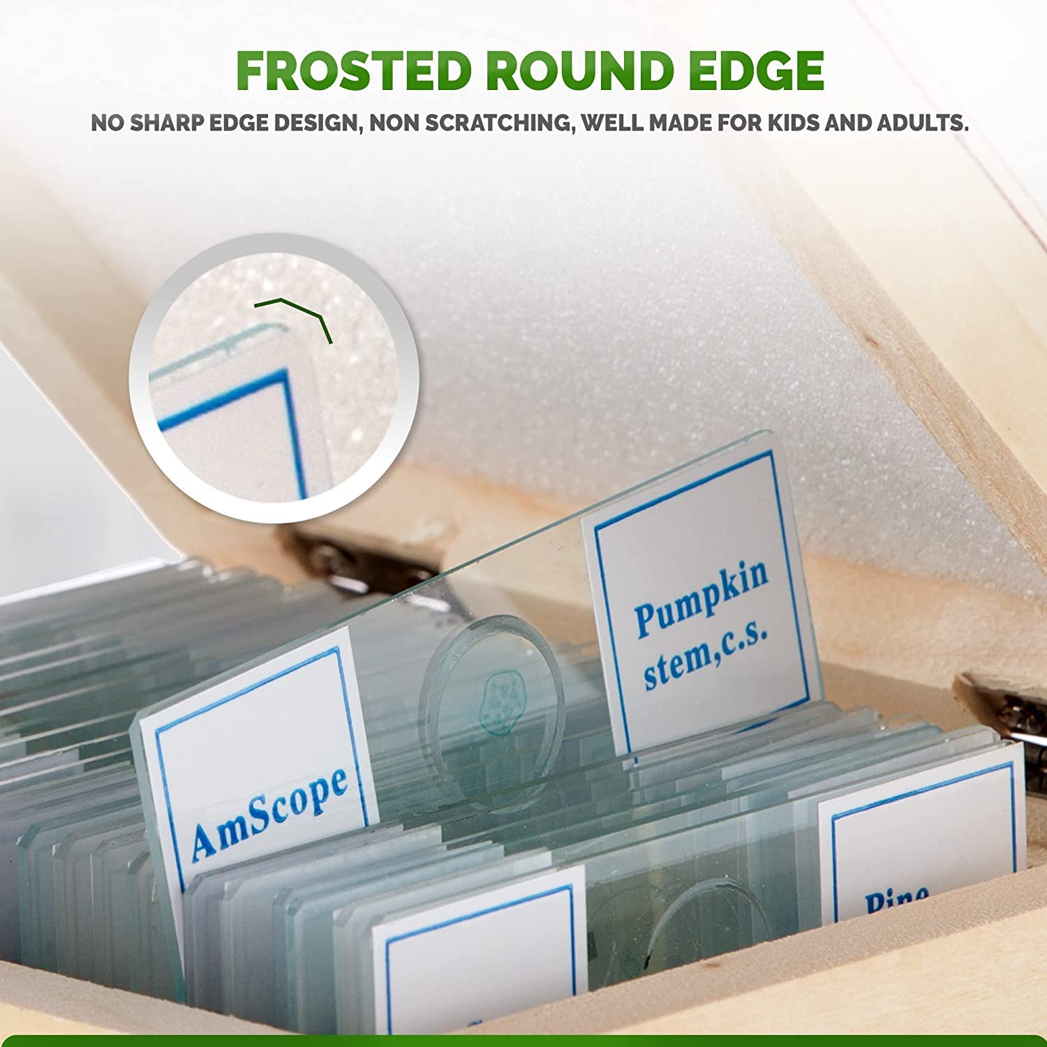 Features & Specifications: 25 PC Glass Prepared Slides. Name Marked on Each Slide. One Wooden Case for Slide Storage