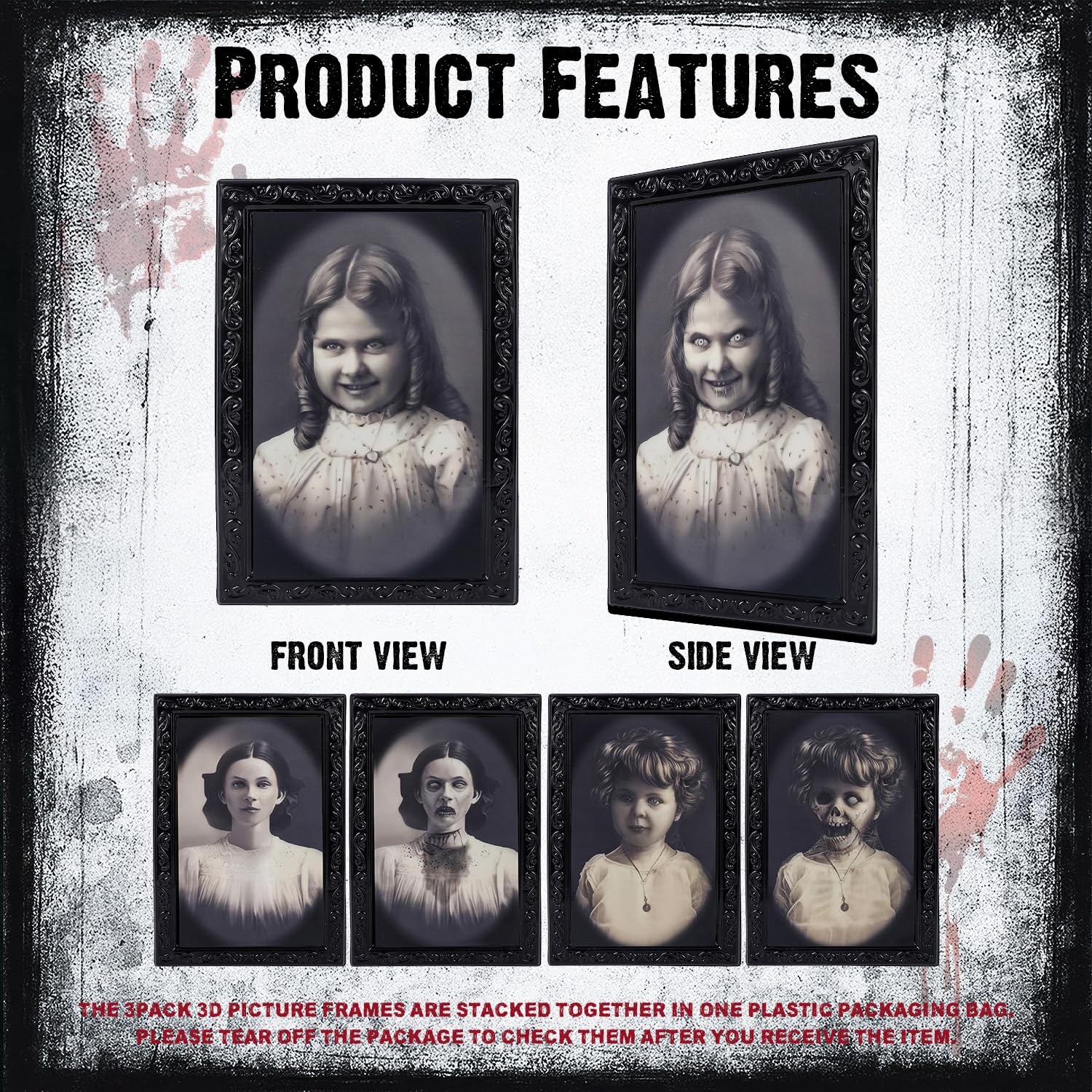 - Lieferumfang: Sie erhalten ein komplettes Set mit 3 verschiedenen, kunstvoll gestalteten 3D Halloween Bildern, die sofort einsatzbereit sind und eine sofortige gruselige Atmosphäre schaffen.