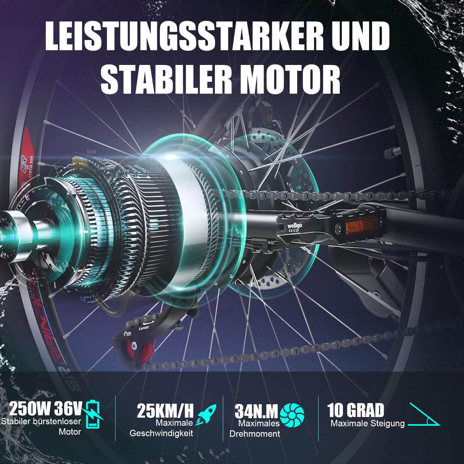 - ✅ KRFTVOLLE LEISTUNG: Dieses Elektrofahrrad/E-Mountainbike verfügt über eine 36V-10.4AH Akku, die eine super Batterielebensdauer hat. Es kann den Reichweite von 40-80 km nach jeder Ladung erfüllen. Egal, ob es sich um Ausflüge im Freien oder um Bergrennen handelt. Der 250 W Hochgeschwindigkeitsmotor nach europäischem Standard bietet mehr Leistung und erreicht eine Geschwindigkeit von 25 km / h, um im Gelände Spaß zu haben.