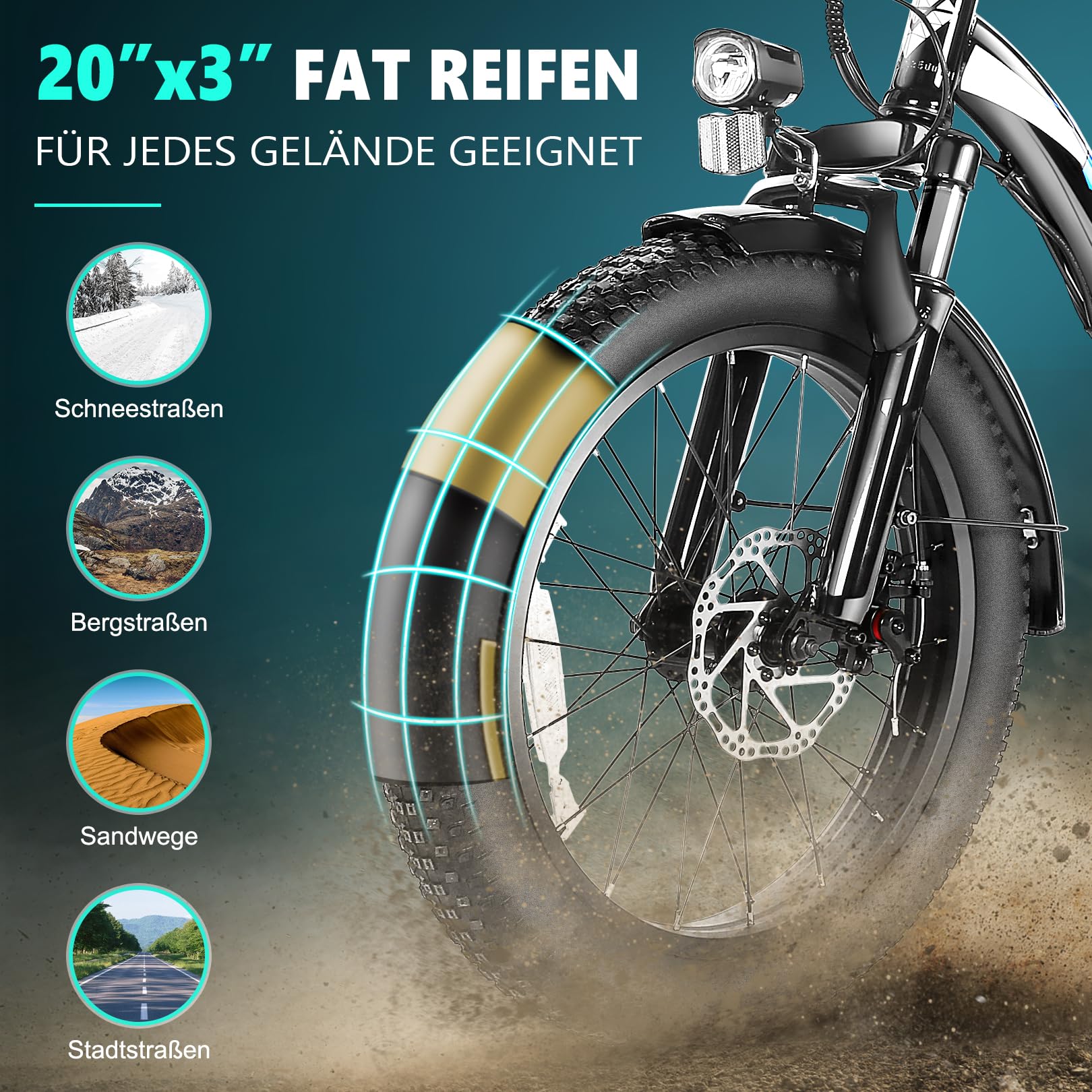 Einzelheiten: ANCHEER Klapprad E-Bike, 20"*3.0 Elektrofahrrad mit 36V 10.2Ah Lithium-Akku für Lange Reichweite bis 100KM, 250W Motor, 7 Gang