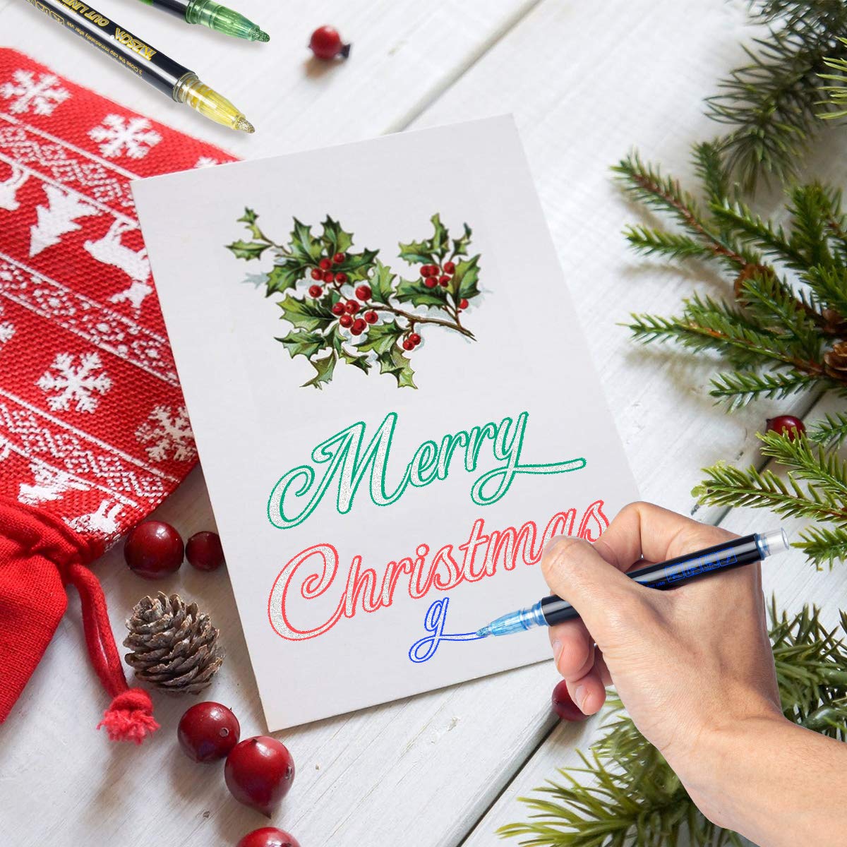 • 🎄🎈Premium-Qualität🎈🎄: Outline marker double line stifte ist die Qualität von Top-Künstler, hergestellt aus hoch pigmentierten Tinten, Schnell trocknend, ungiftig, geruchlos, hoher Deckkraft, wasserfeste und permanent marker. das Outliner stift Glitzerstifte mit Verbesserte Struktur macht das Schreiben glatter, bessere Kontureffekte, die längste Verwendung