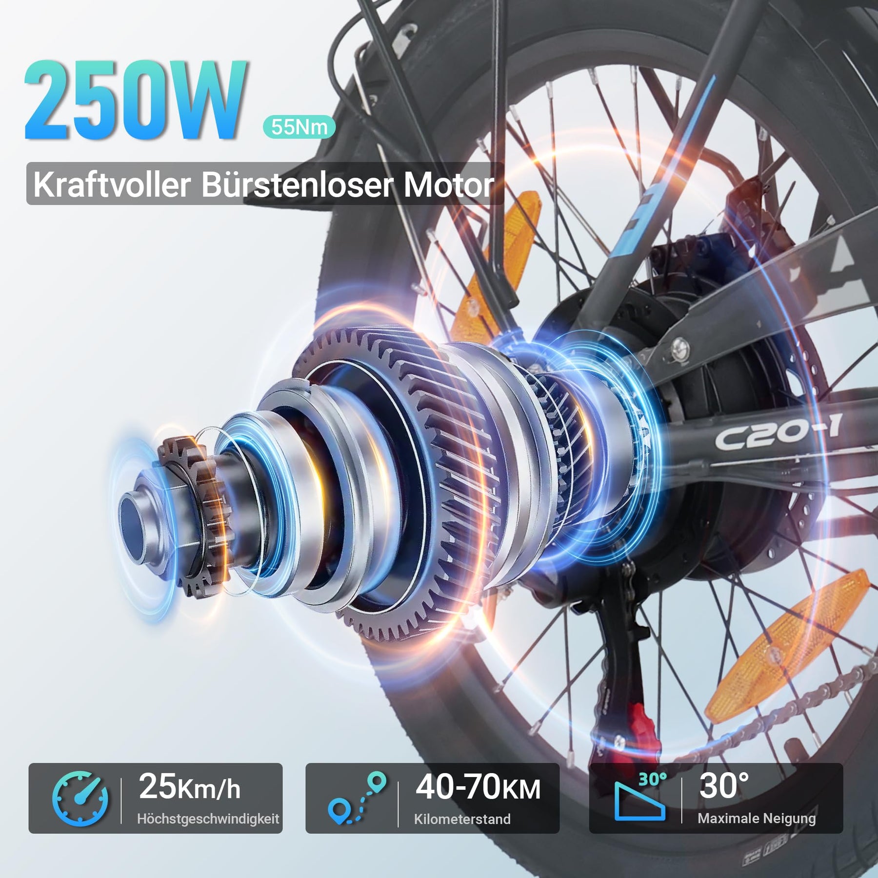 AOIHO E Bike, 20" EBike Klapprad mit 48V 374.4 Wh Lithium-Akku, Reichweite Max 70KM, Elektrofahrrรคder 250W Motor, 5 Fahrmodi, City E Fahrrad Herren Damen mit 7 Gรคngen EU-Konformes Klapprad E-Bike