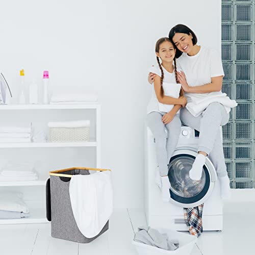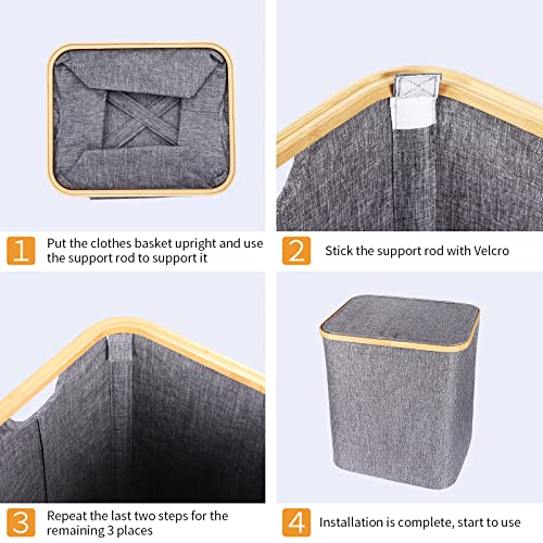Der Wäschekorb verfügt über 4 Bambushalter, um Stabilität zu gewährleisten. Dank des faltbaren Designs für den Compact können Sie den Wäschekorb zusammenklappen, wenn Sie ihn nicht verwenden oder transportieren müssen, um Platz zu sparen.