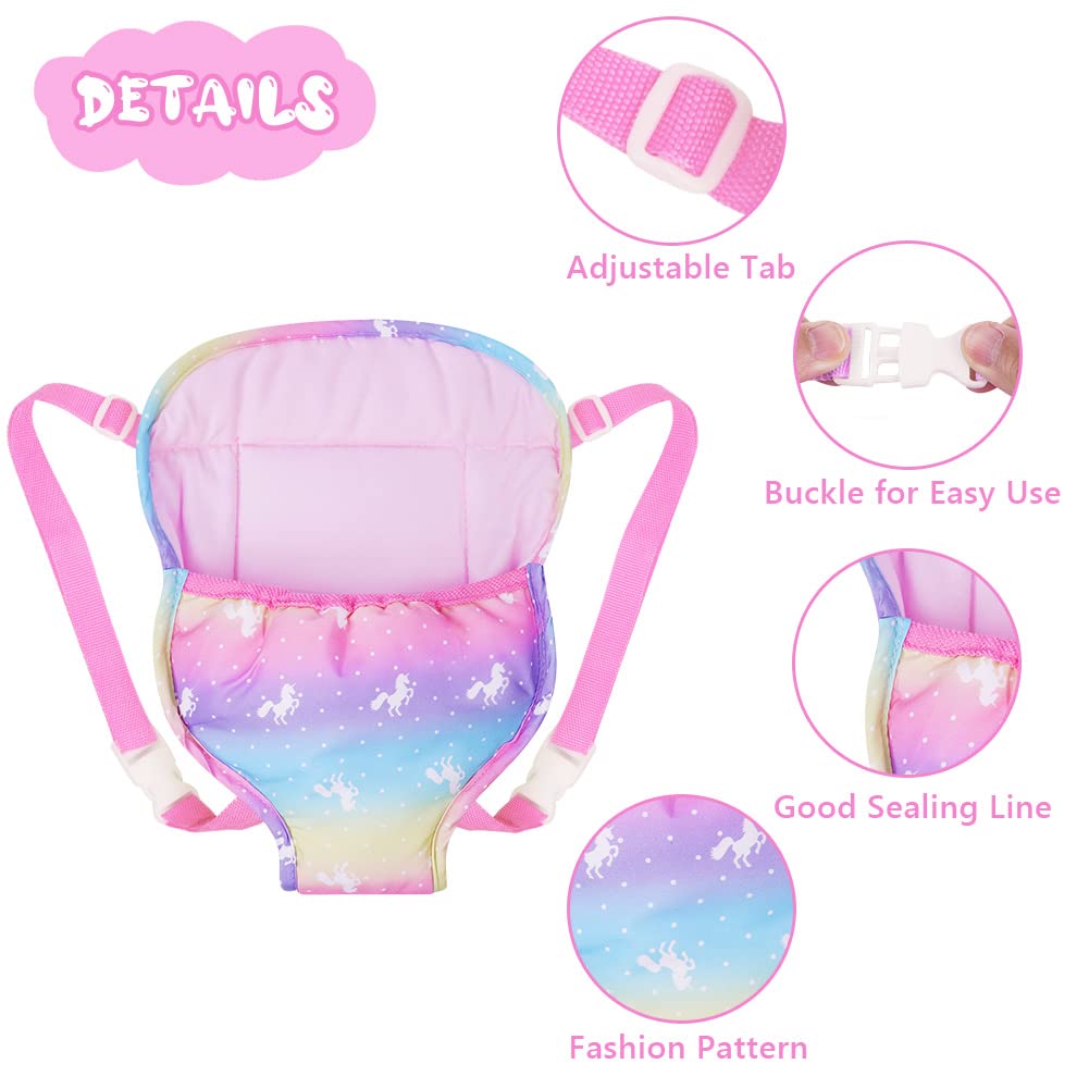 - 🦄Hochwertiger Stoff: Diese Puppenrucksäcke bestehen aus sicherem und hochwertigem Stoff und sind langlebig, waschbar, bequem und weich. Tolles Puppenzubehör zum Tragen von Babypuppen oder Stofftieren.