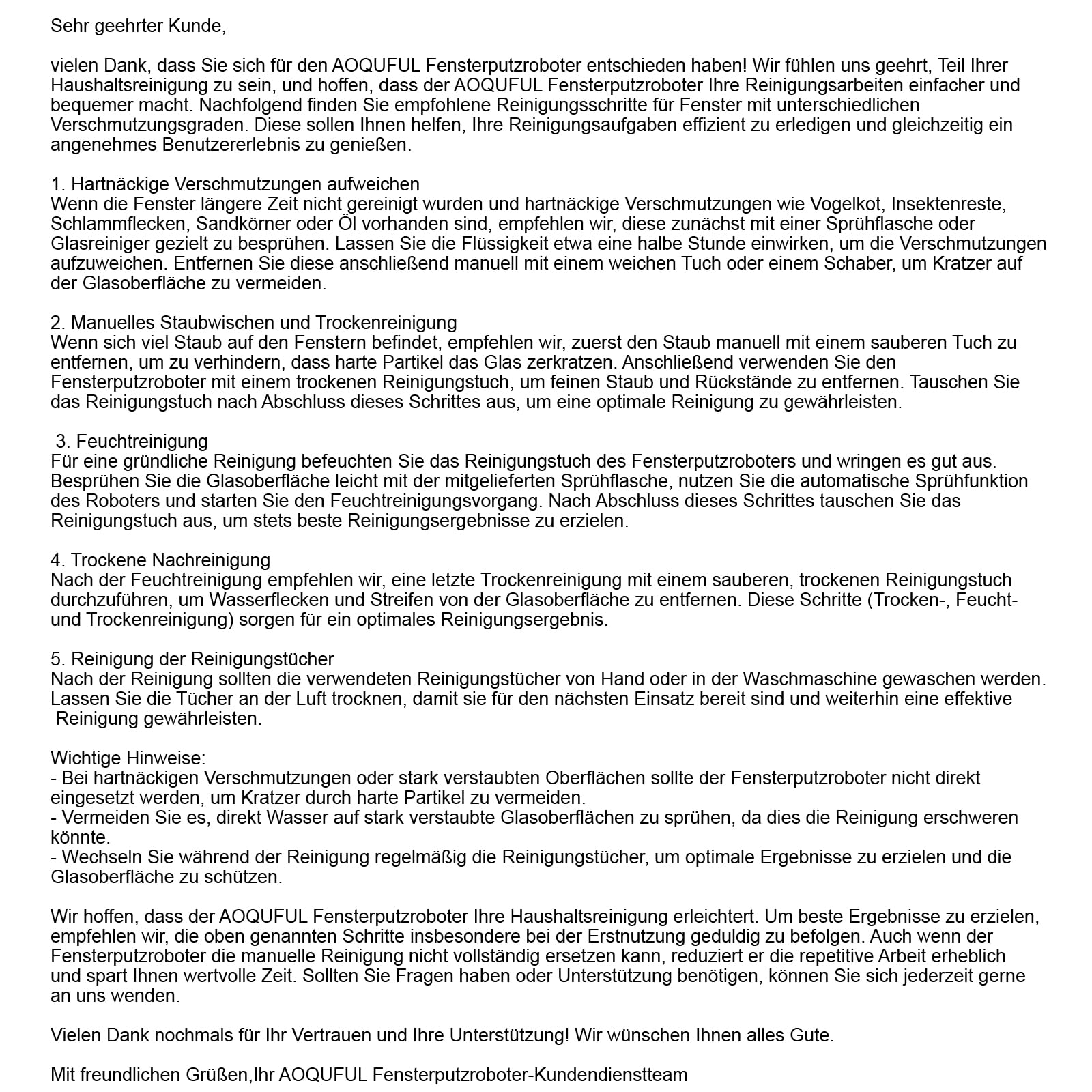 • Verbessertes Dual-Wassersprühsystem: Mit einem innovativen doppelseitigen Wassersprühsystem und einem 70-ml-Wassertank gewährleistet dieser Roboter eine umfassende Abdeckung und hält die ideale Feuchtigkeit beim Wischen konstant. Er entfernt effektiv Schmutz, Flecken und Fingerabdrücke und hinterlässt Ihre Fenster kristallklar – mit minimalem Aufwand.