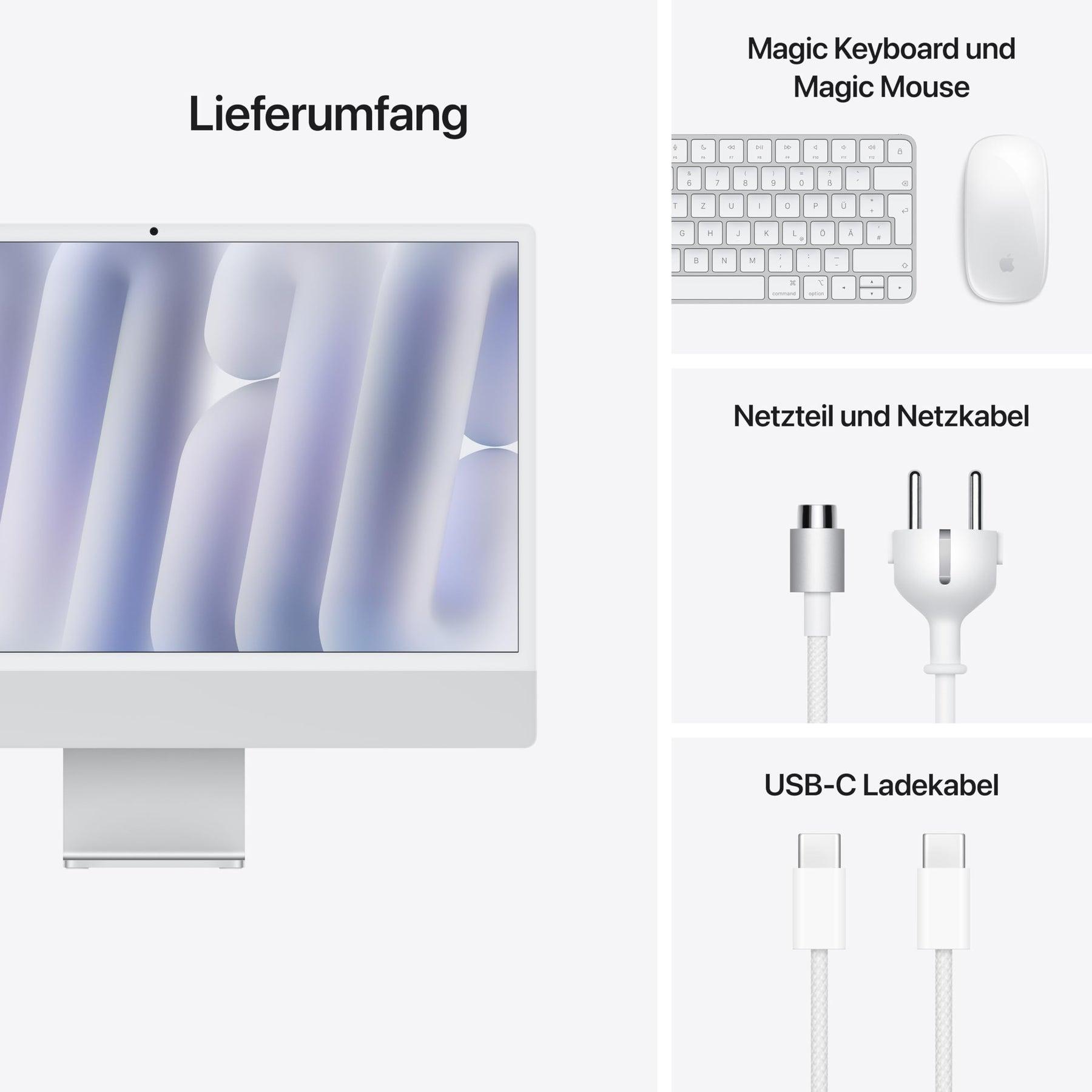 Einzelheiten: iMac. Der ultimative All in One Desktop-Computer. Die Power des M4 Chip macht das Navigieren und Multitasking mit mehreren Apps noch schneller. Mit einem beeindruckenden 24" 4.5K Retina Display in einem ikonischen Design. Fortschrittliche Kamera, Mikrofone und Lautsprecher. So ist der iMac perfekt für Arbeit und Gaming.