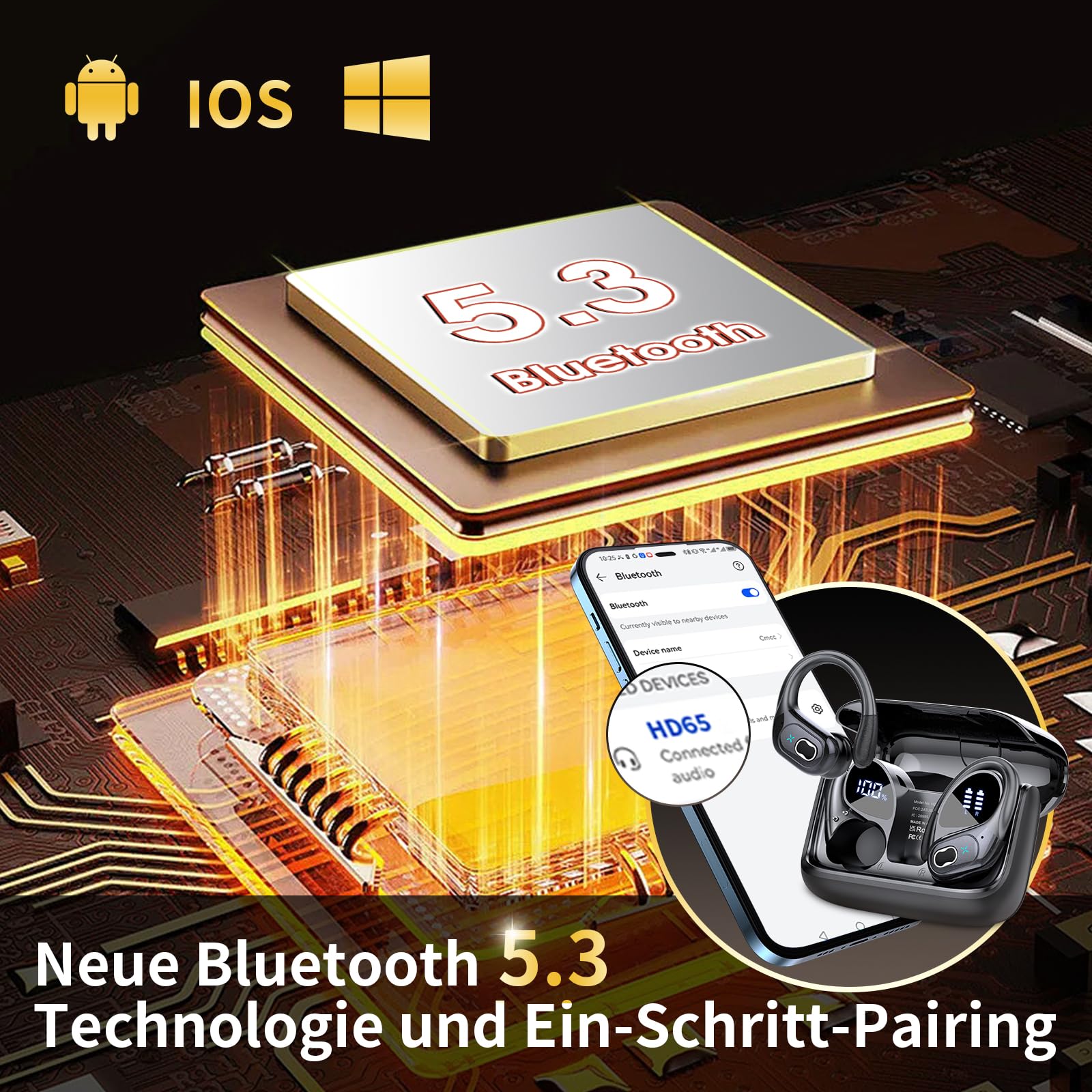 - Bluetooth 5.3-Technologie und nahtlose Verbindung: Die In Ear Kopfhörer Bluetooth nutzen die neueste Bluetooth 5.3-Technologie, die die Übertragungsgeschwindigkeit von Audiodaten um bis zu 75 % erhöht und ein Hörerlebnis mit geringer Latenz bietet. Nach dem Öffnen der Ladehülle verbindet sich der kabellose Bluetooth Kopfhörer automatisch und schnell mit dem zuletzt gekoppelten Gerät, wodurch umständliche Vorgänge und Wartezeiten entfallen.