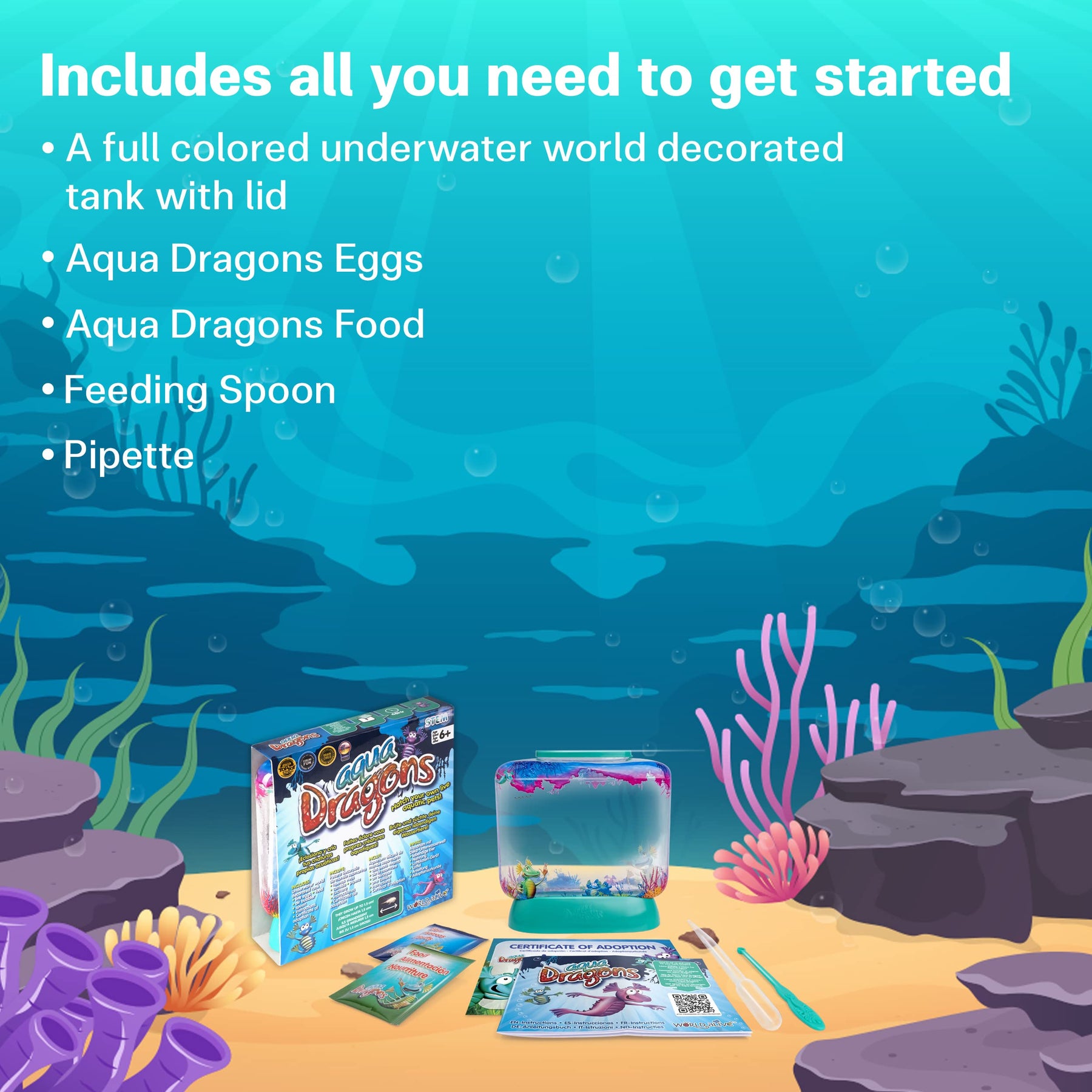 - BOX VOLLER WUNDER: Die Box enthält ein 400-ml-Aquarium, Aqua Dragon-Eier, Futter, einen Löffel, eine Pipette und eine einfache Anleitung. Schlüpfen, füttern und pflegen Sie Ihre Aquadrachen mit diesem lustigen und einfachen Set.