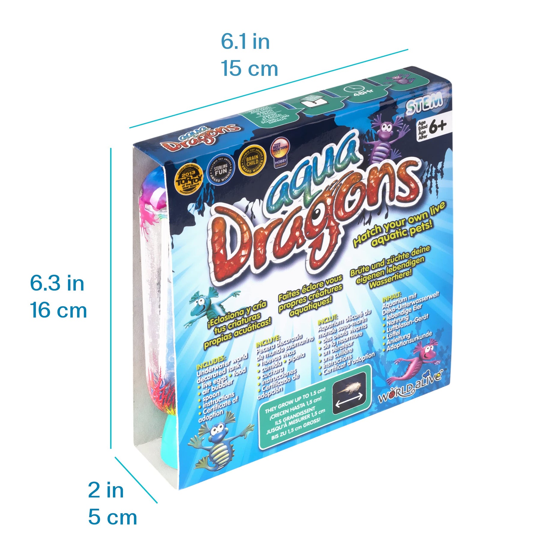 - LEBENDE AQUA-DRACHEN: Lebende Aqua-Drachen werden bis zu 1,5 cm groß. Beobachten Sie, wie sie in Ihrem Zuhause schlüpfen, schwimmen und gedeihen. Sie sind ein lustiges, lehrreiches Haustier für Kinder und Familien. (Größe: 15 x 4,1 x 15,1 cm)