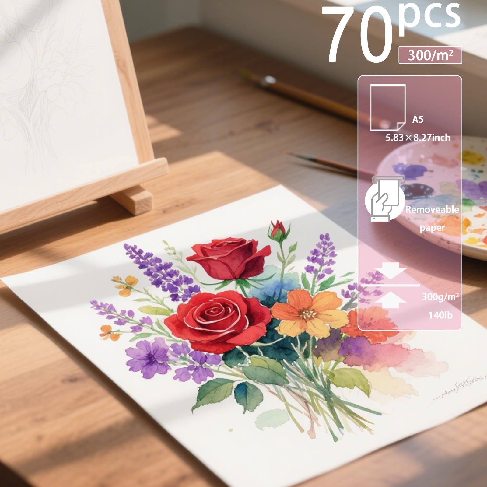 Einzelheiten: Aquarellpapier A5 – 70 Blatt hochwertiges Aquarellpapier 300g/m² – Säurefreies Watercolor Paper für Aquarell, Gouache & Acryl – Stabiler Malpapier für Künstler & Hobby
