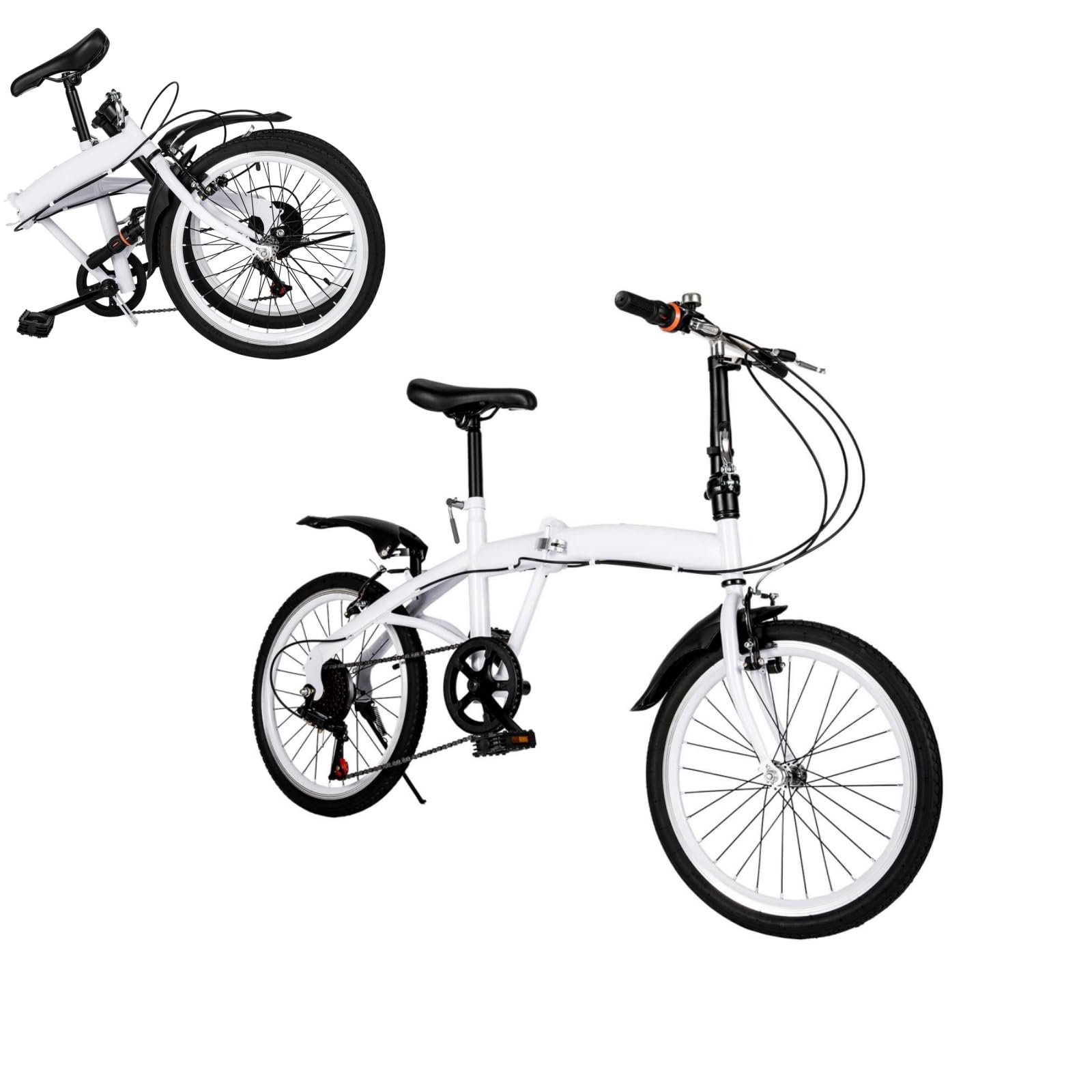 ARBGO 20 Zoll Faltrad, Klapprad, 6 Gang-Schaltung Klappfahrrad, Doppel-V-Bremse Faltrad Klapprad, Karbonstahl Klappbar Fahrräder, Höhenverstellbar, für Sport Outdoor Radfahren Pendeln, Weiß