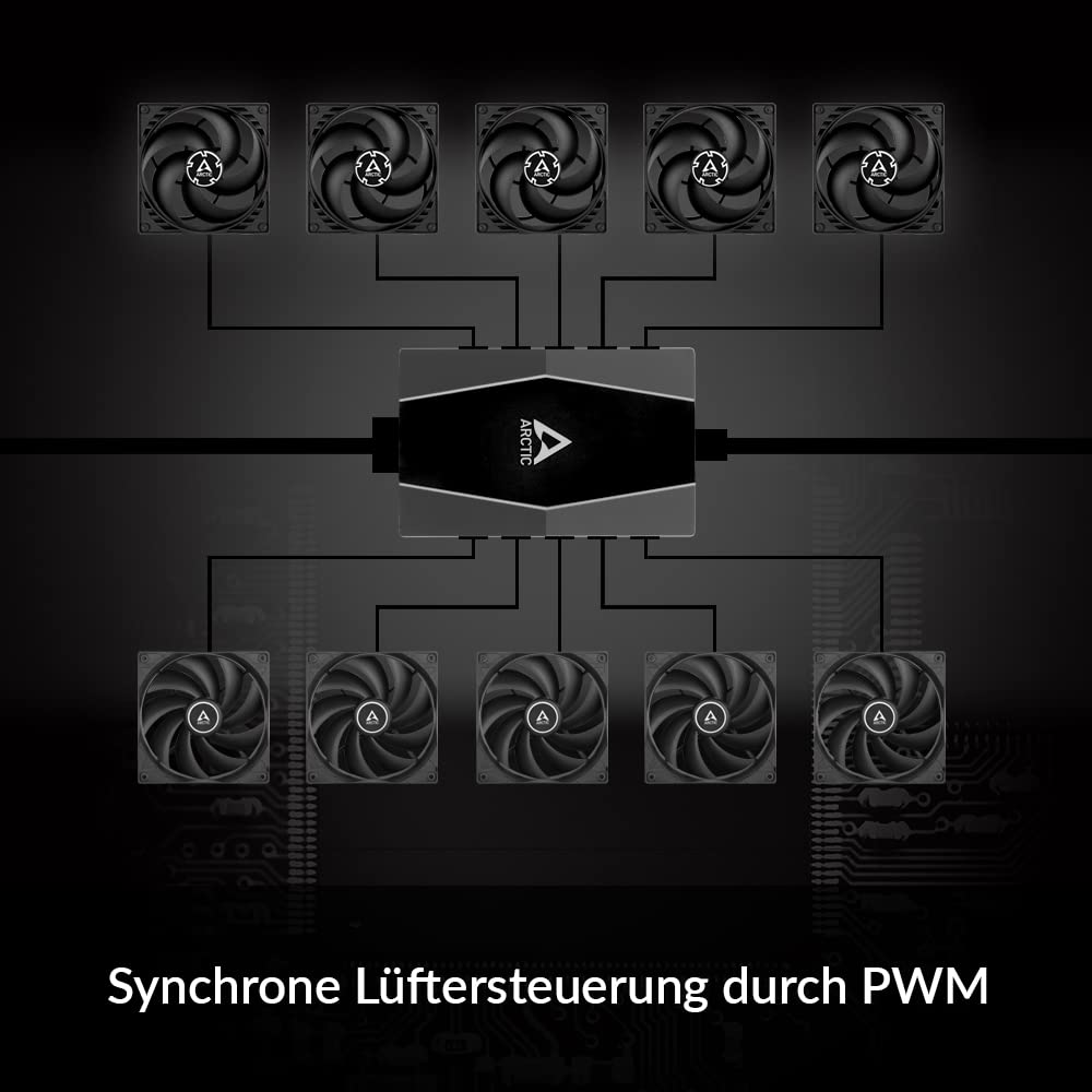 ARCTIC Case Fan Hub - 10-Fach PWM Lüfter-Verteiler mit SATA Power, Gehäuselüfter - Schwarz