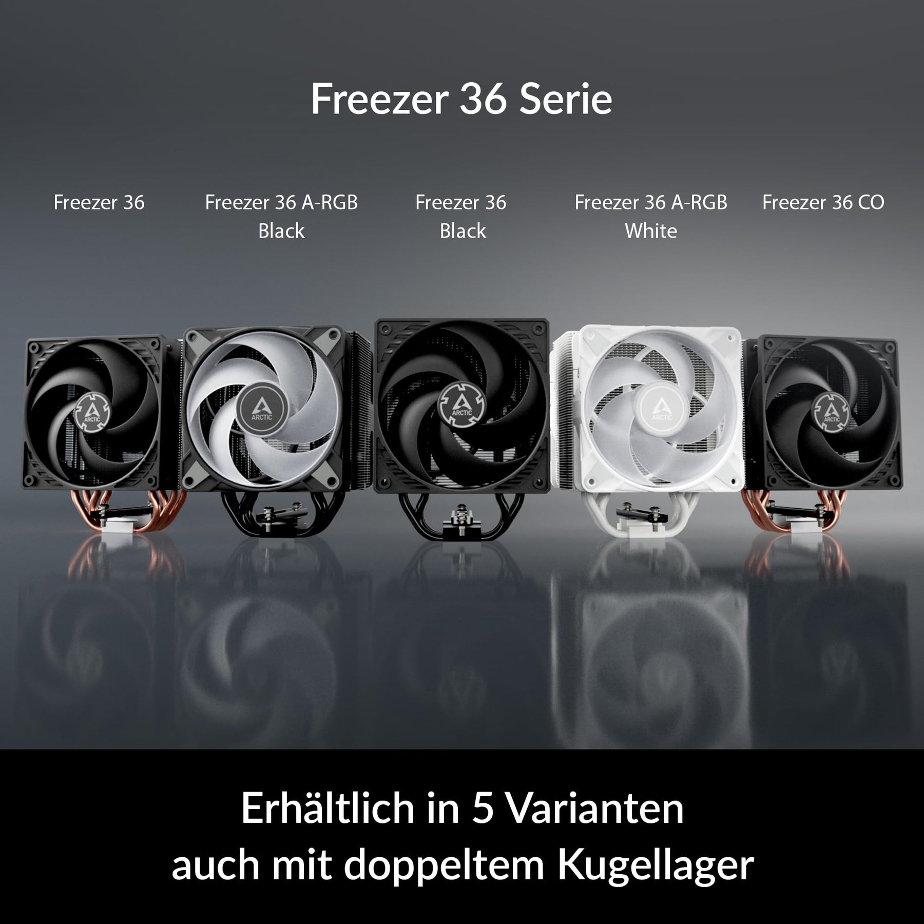 - INNOVATIVE LÜFTERMONTAGE: Neuartiges Klick-System erleichtert die Installation des Kühlers oder den Austausch der Lüfter. Der Freezer 36 A-RGB ist mit den meisten 120 mm Lüftern kompatibel