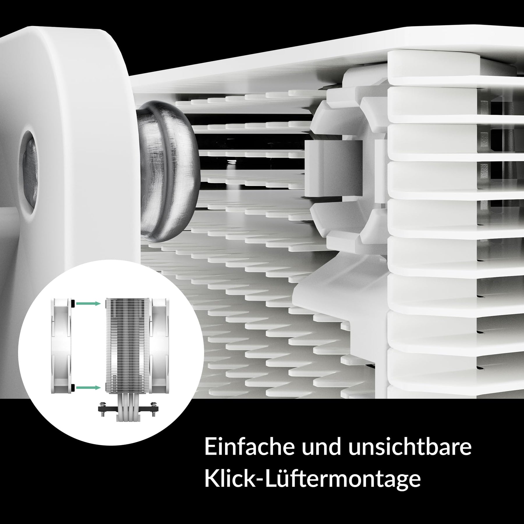 - HOHE LEISTUNG FÜR HIGH-END-CPUs: Der Single-Tower-Kühler ermöglicht mit seinen 4 versetzten Heatpipes eine schnelle Wärmeübertragung in den Kühlkörper. Dort wird die Wärme durch druckoptimierte 120 mm Lüfter effizient abgeführt