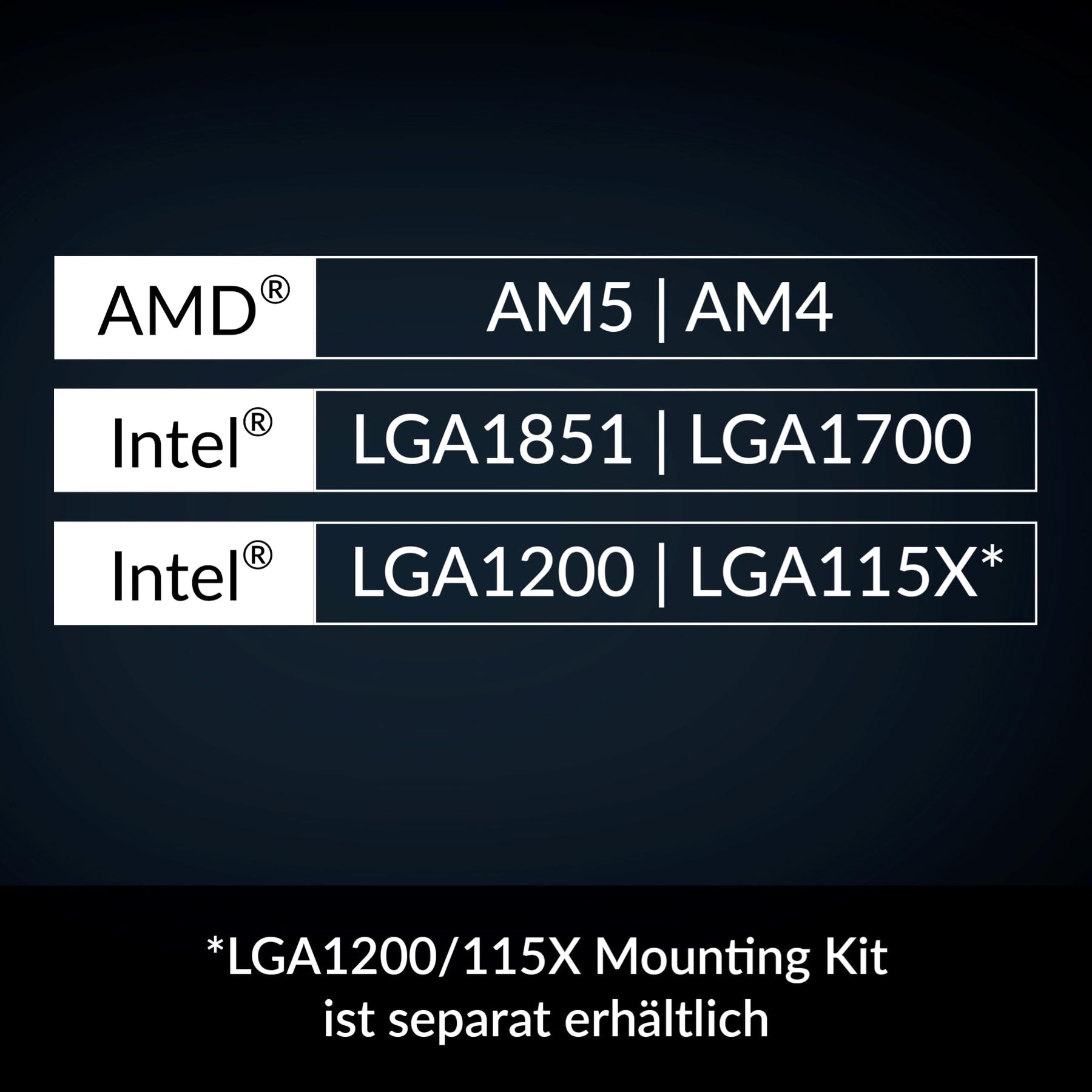 - NATIVE AMD OFFSET MONTAGE: Optimiert auf das Multi-Die-Chiplet-Design der Ryzen-Prozessoren - 5 mm Offset für optimale Abdeckung des CPU-Hotspots führt zu einer effizienteren Wärmeübertragung