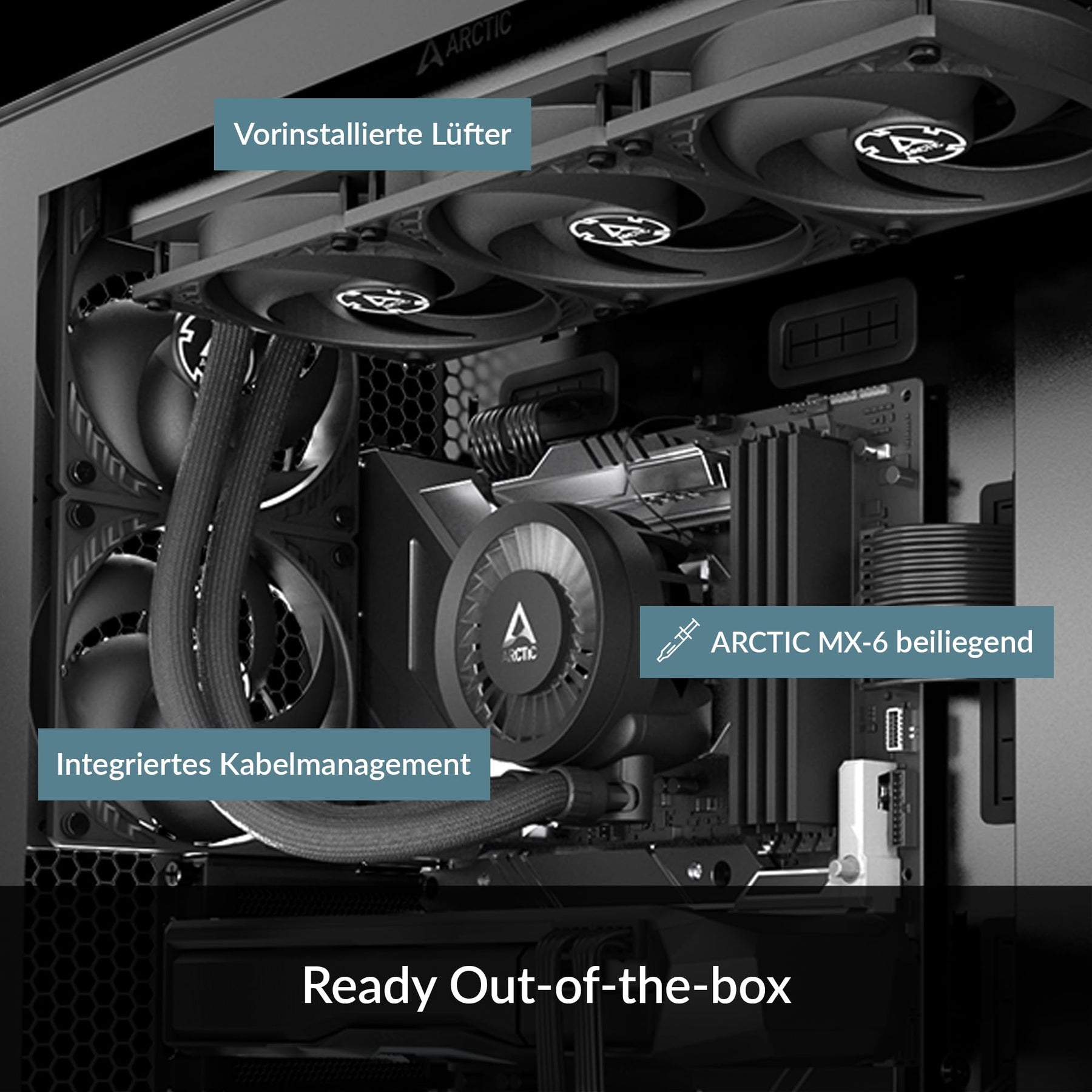 - INTEGRIERTES KABELMANAGEMENT: Die PWM-Kabel der Radiatorlüfter sind in der Ummantelung der Schläuche integriert, wodurch nur ein sichtbares Kabel mit dem Motherboard verbunden wird