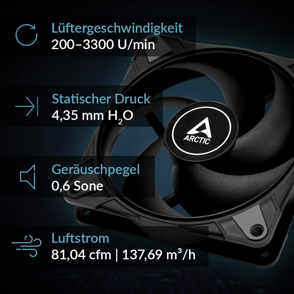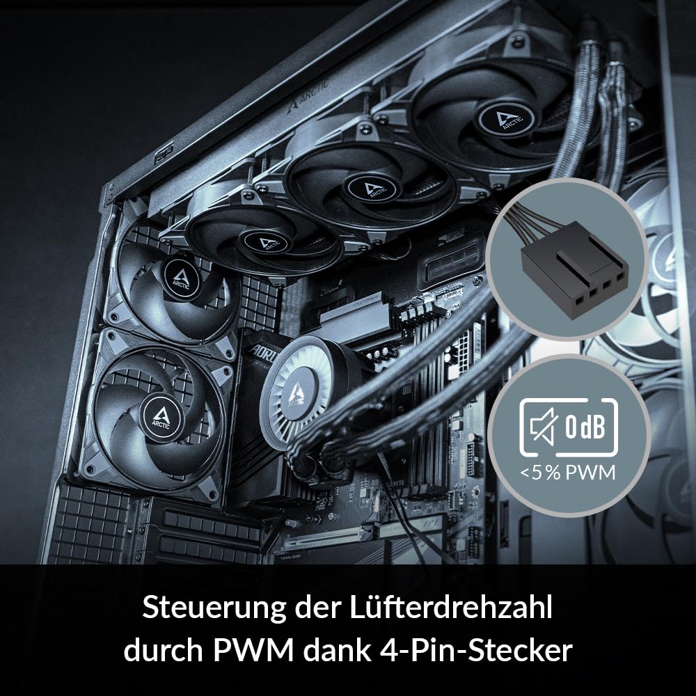 - HYDRODYNAMISCHES GLEITLAGER: Lange Lebensdauer, geräuschloser Betrieb bei niedrigen Geschwindigkeiten und brachiale Leistung bei maximaler Geschwindigkeit. Alle von ARCTIC verkauften P12 Max Lüfter sind jetzt mit hydrodynamischem Gleitlager ausgestattet. Bitte beachte, dass Produkte von Resellern möglicherweise noch mit doppeltem Kugellager verkauft werden