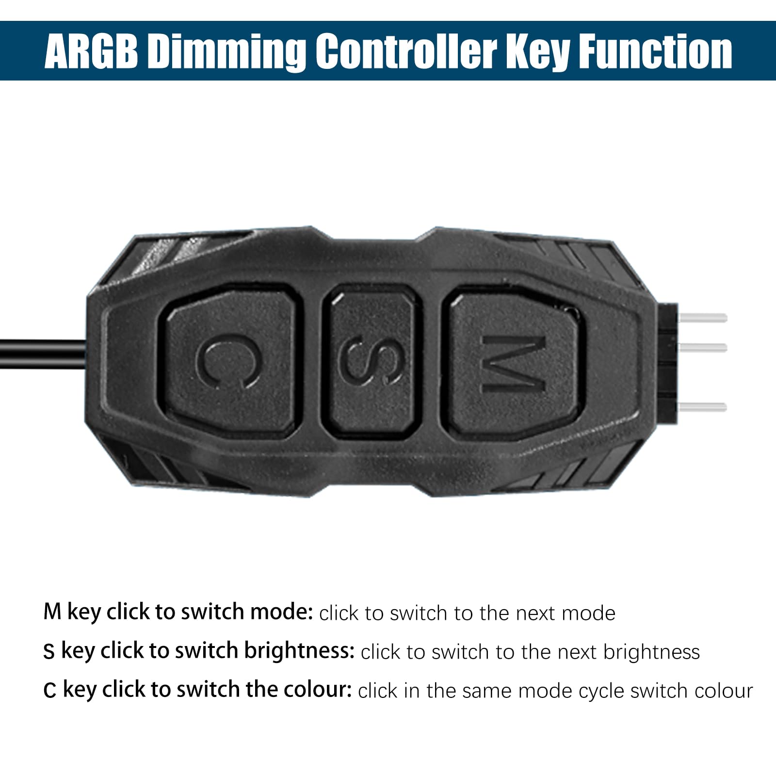 • Effizientes RGB-Beleuchtungsmanagement: Der ARGB Controller bietet mehrere integrierte Beleuchtungsmodi mit "M", "S" und "C"Tasten für einfaches Umschalten zwischen Modi, Helligkeit und Farben und ermöglicht so anpassbare Lichteffekte.