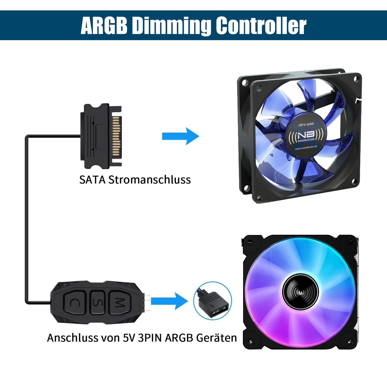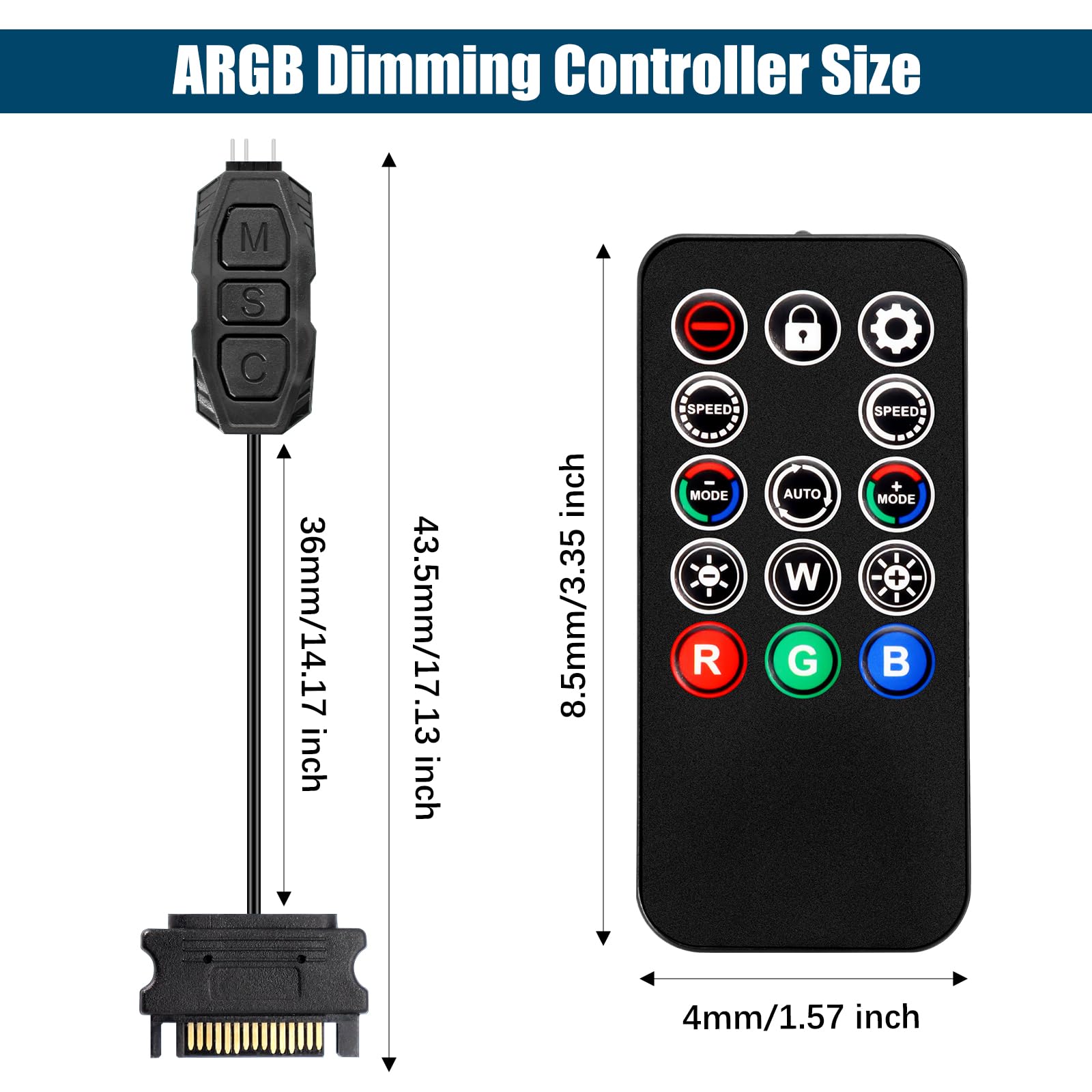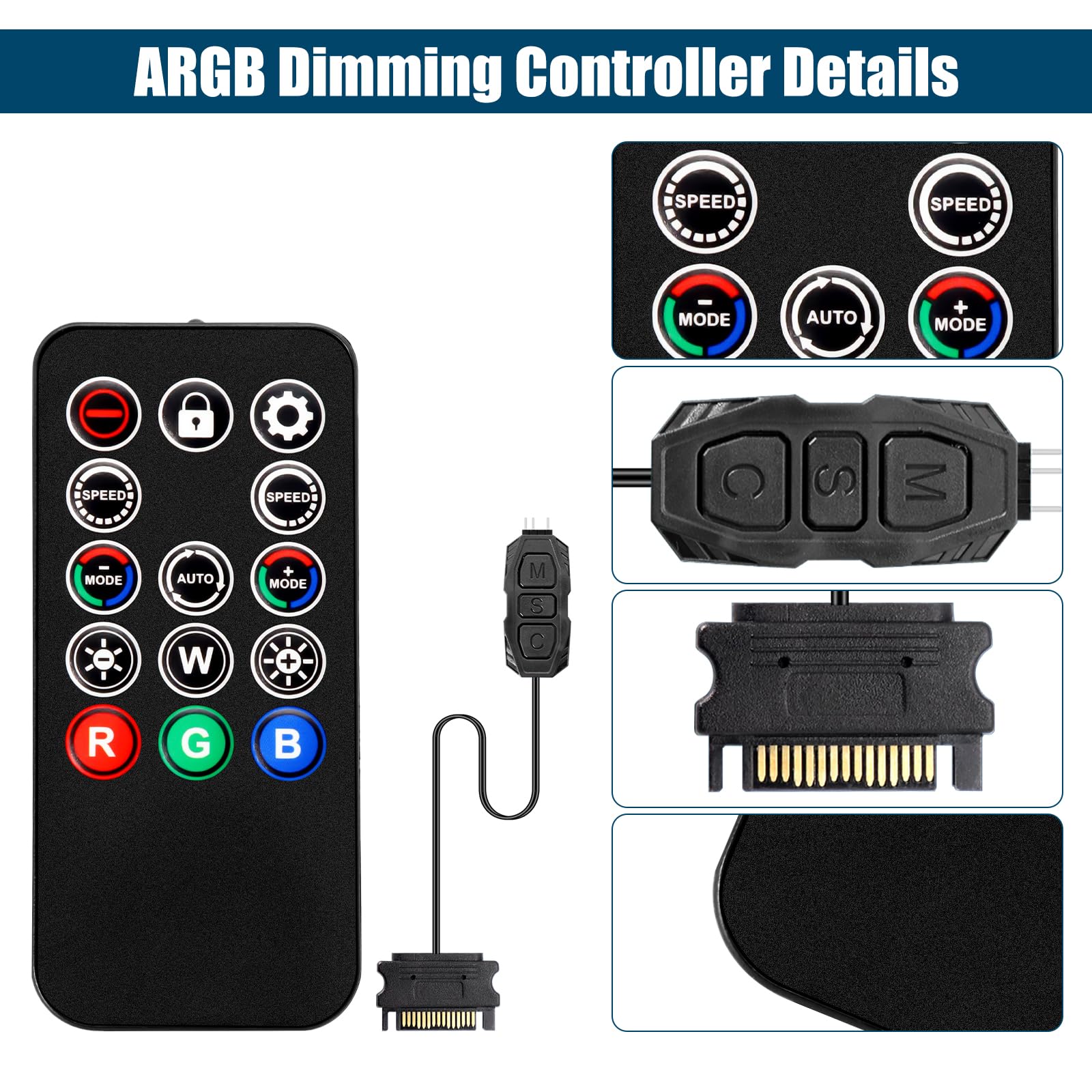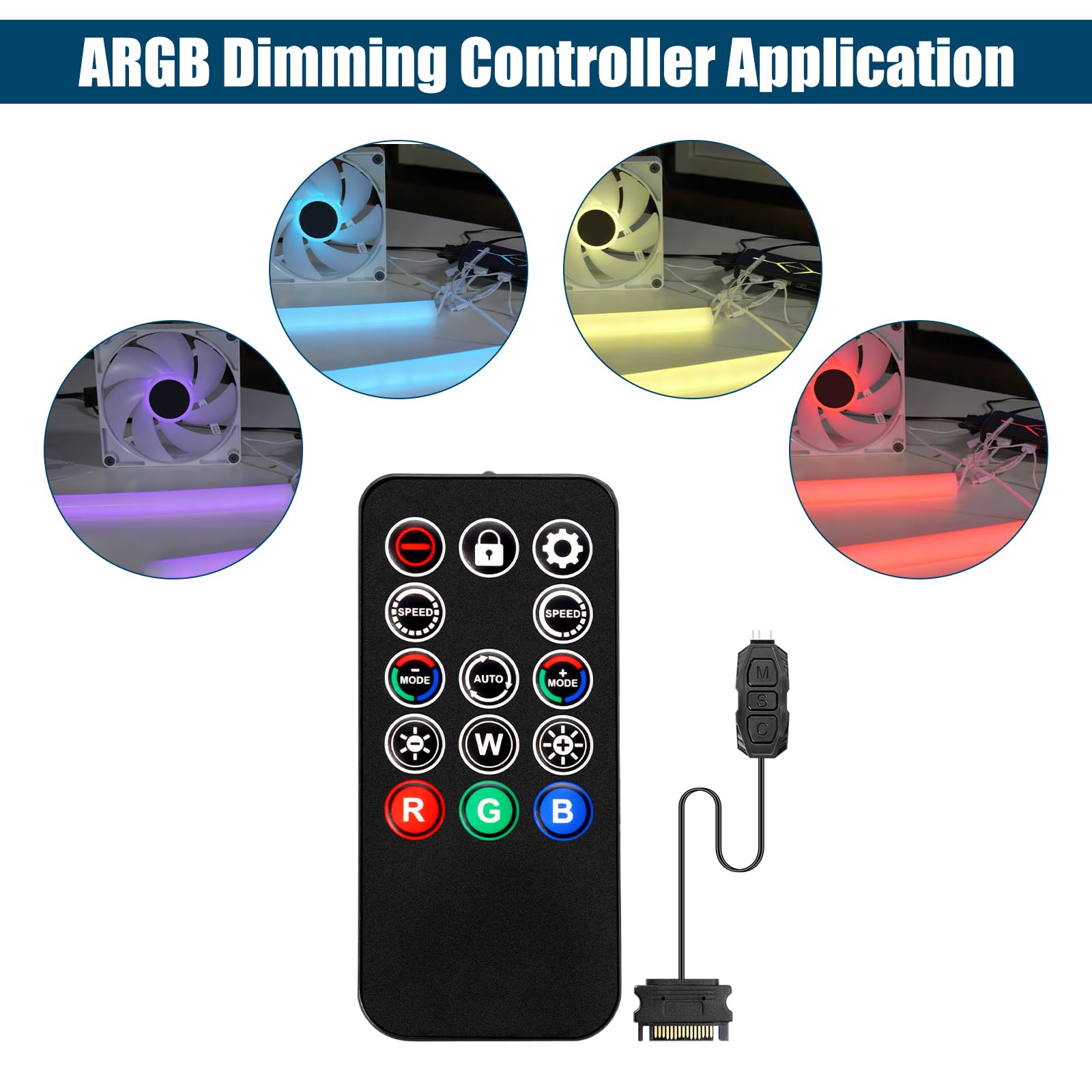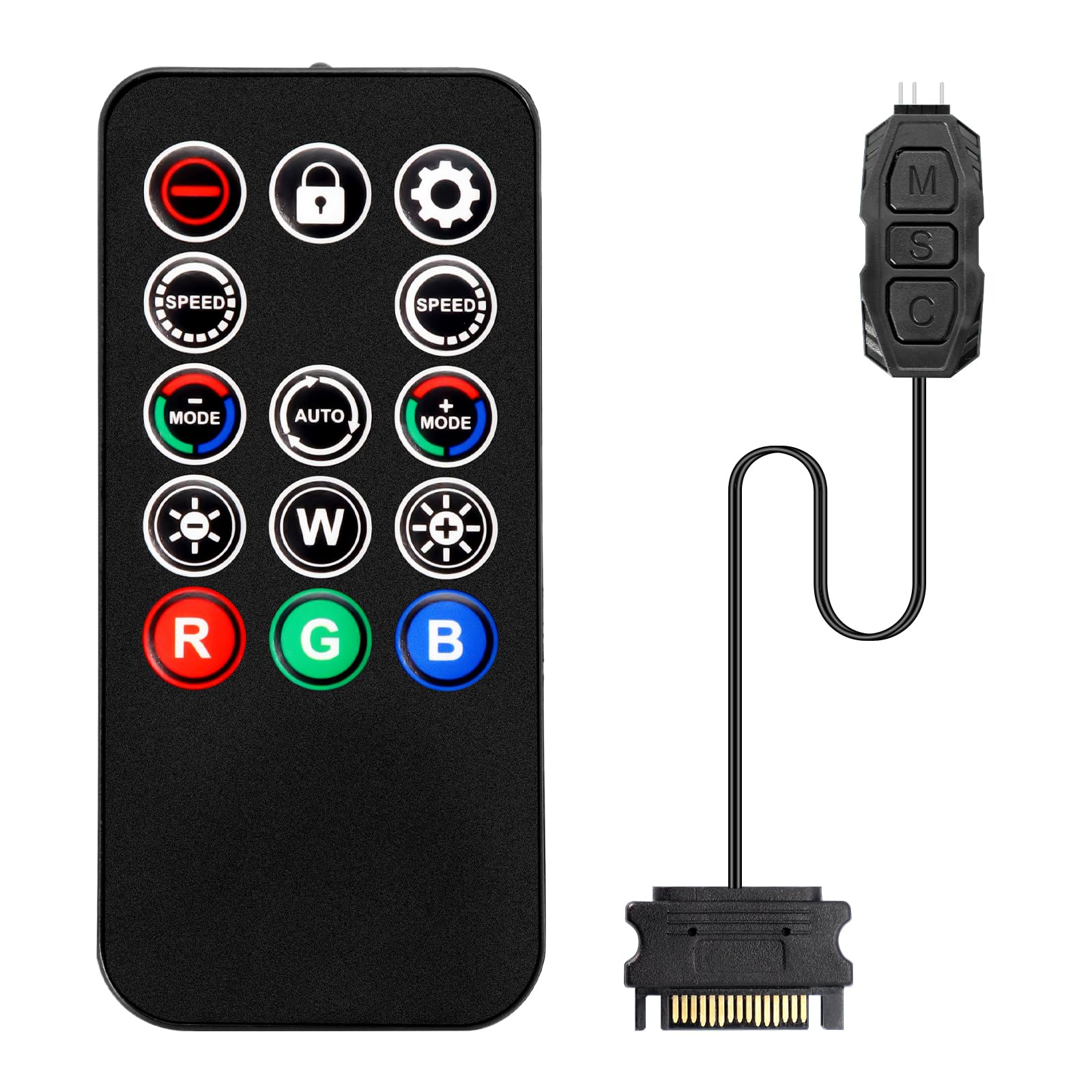 ARGB Controller mit Fernbedienung Binghe 5V 3-Pin ARGB Controller ARGB Dimm Controller SATA-betriebener Dimmer 14 Key Fernbedienung Switch Farben RGB Fan Hub für Desktop-Gehäuselüfter und Lichtleisten