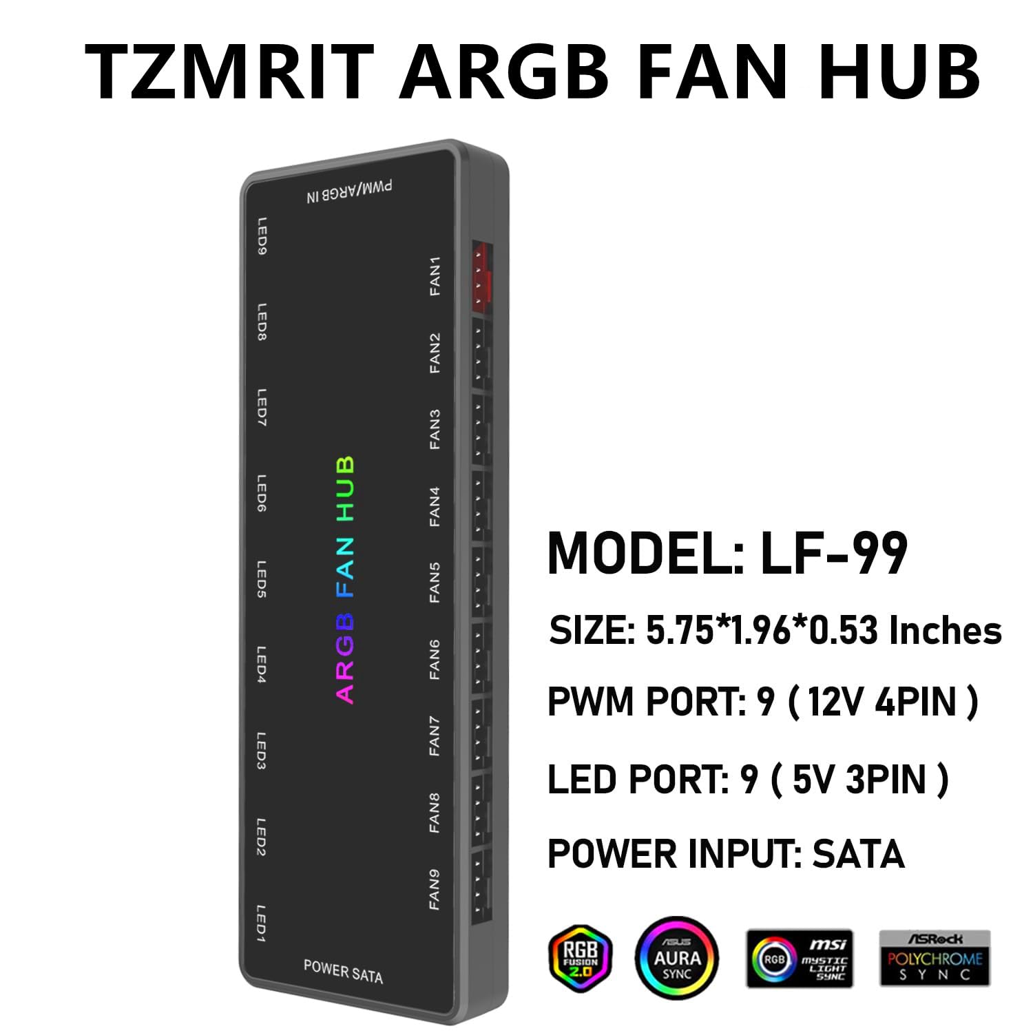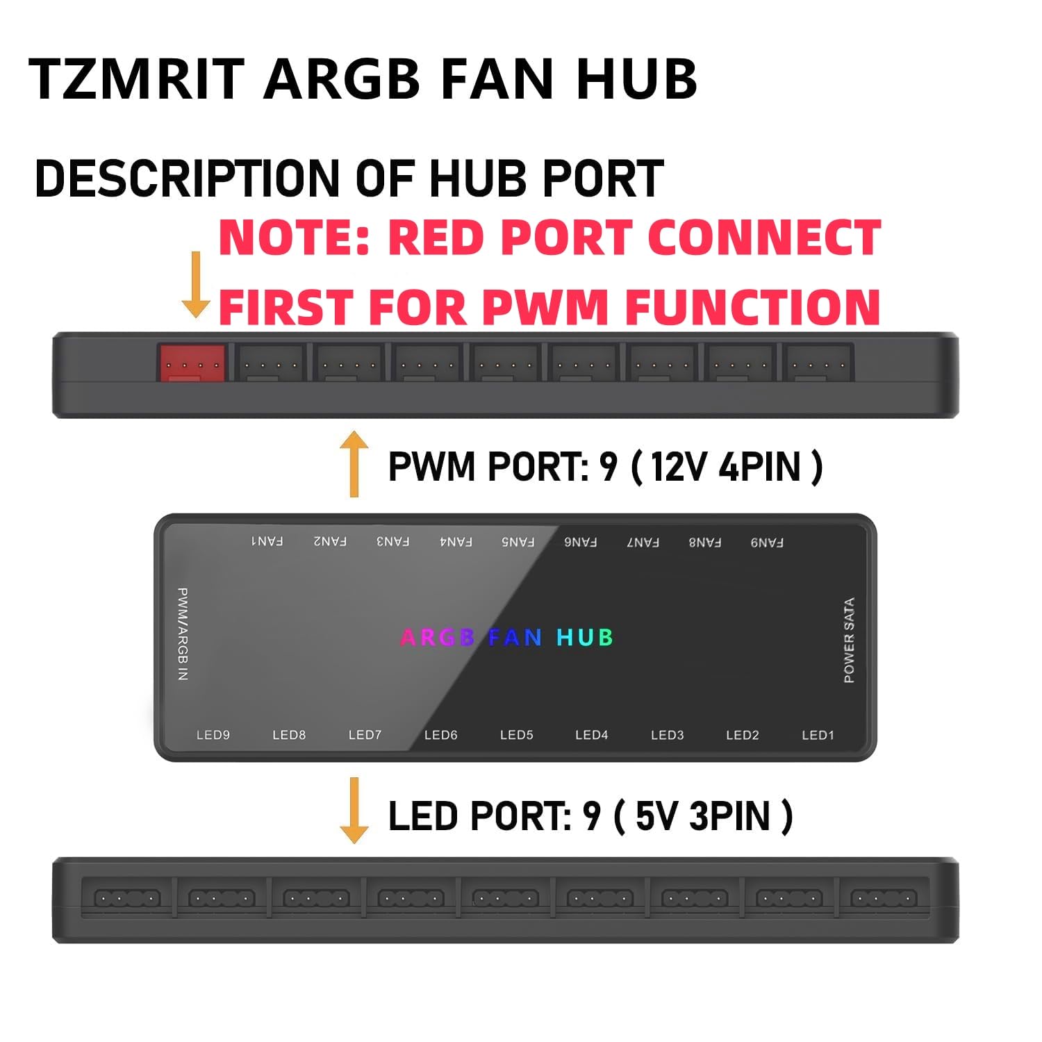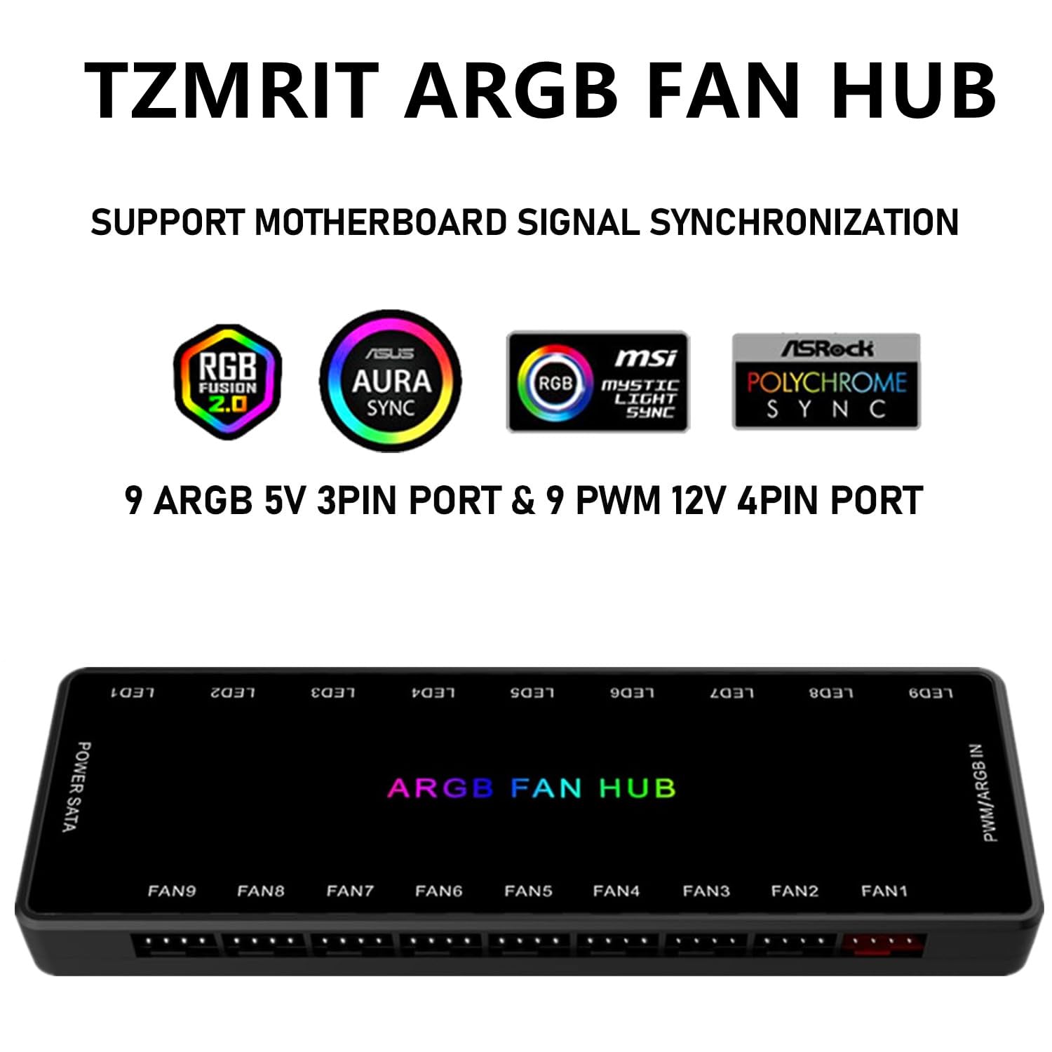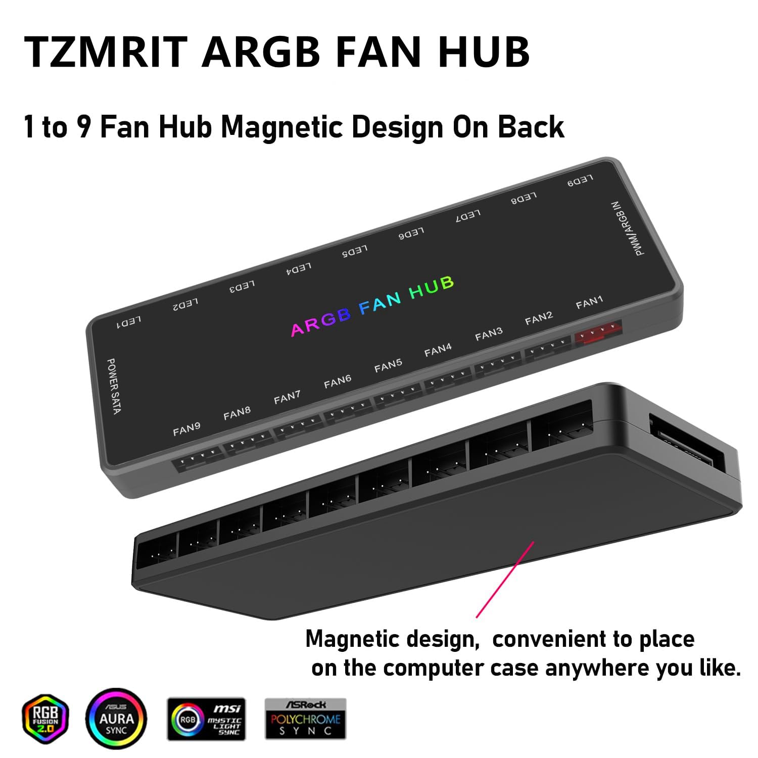 ARGB PWM Fan Hub, Addressable 5V 3Pin ARGB & 12V 4Pin PWM 2-in-1 RGB Case Fan Hub with Hidden Magnetic Base and SATA Power 18 Port, Support 9 Computer CPU Fans Splitter