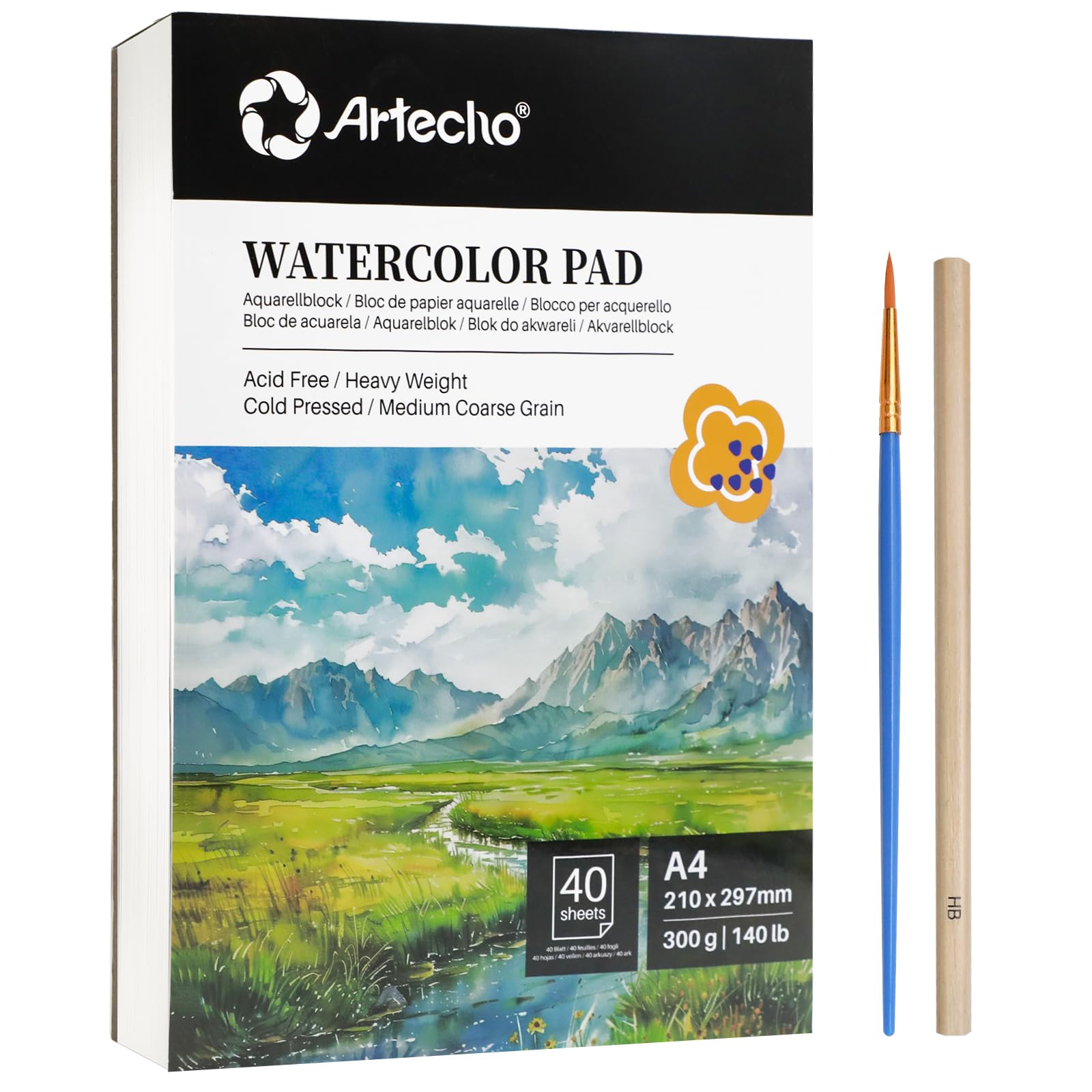 - Produktspezifikation: Die Größe des Artecho-Aquarellpapierblocks beträgt 21 x 29,7 cm, 40 Blatt, 300 g Premium-Aquarell-Papierblock. Im Lieferumfang sind ein 1 Bleistift und ein 1 Aquarellpinsel enthalten, um Ihre vielfältigen Zeichenanforderungen zu erfüllen.