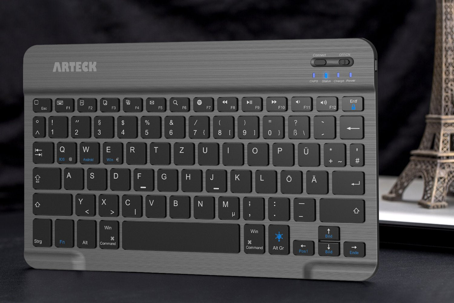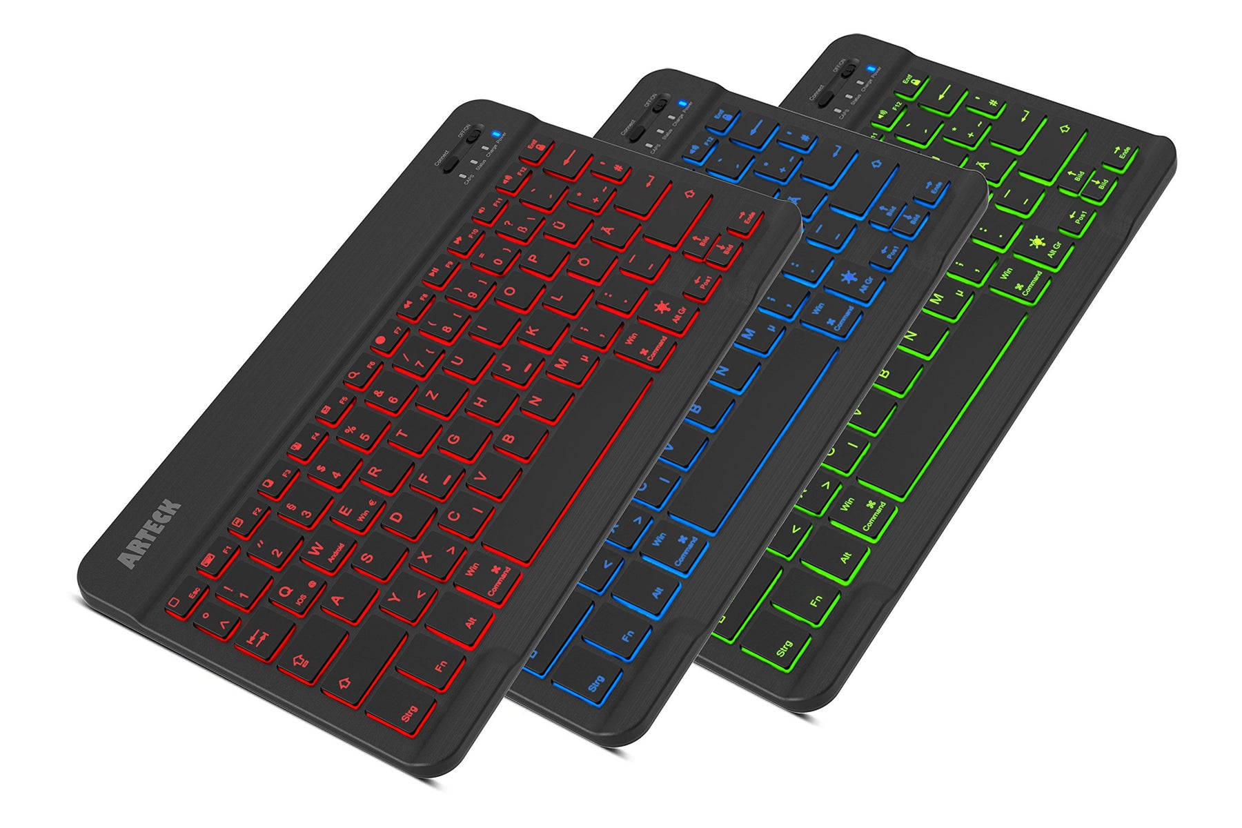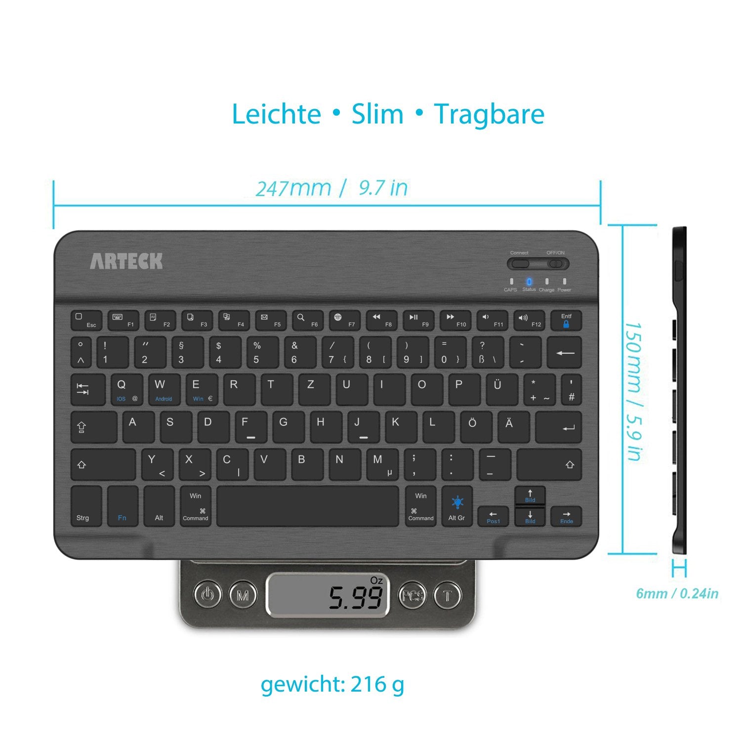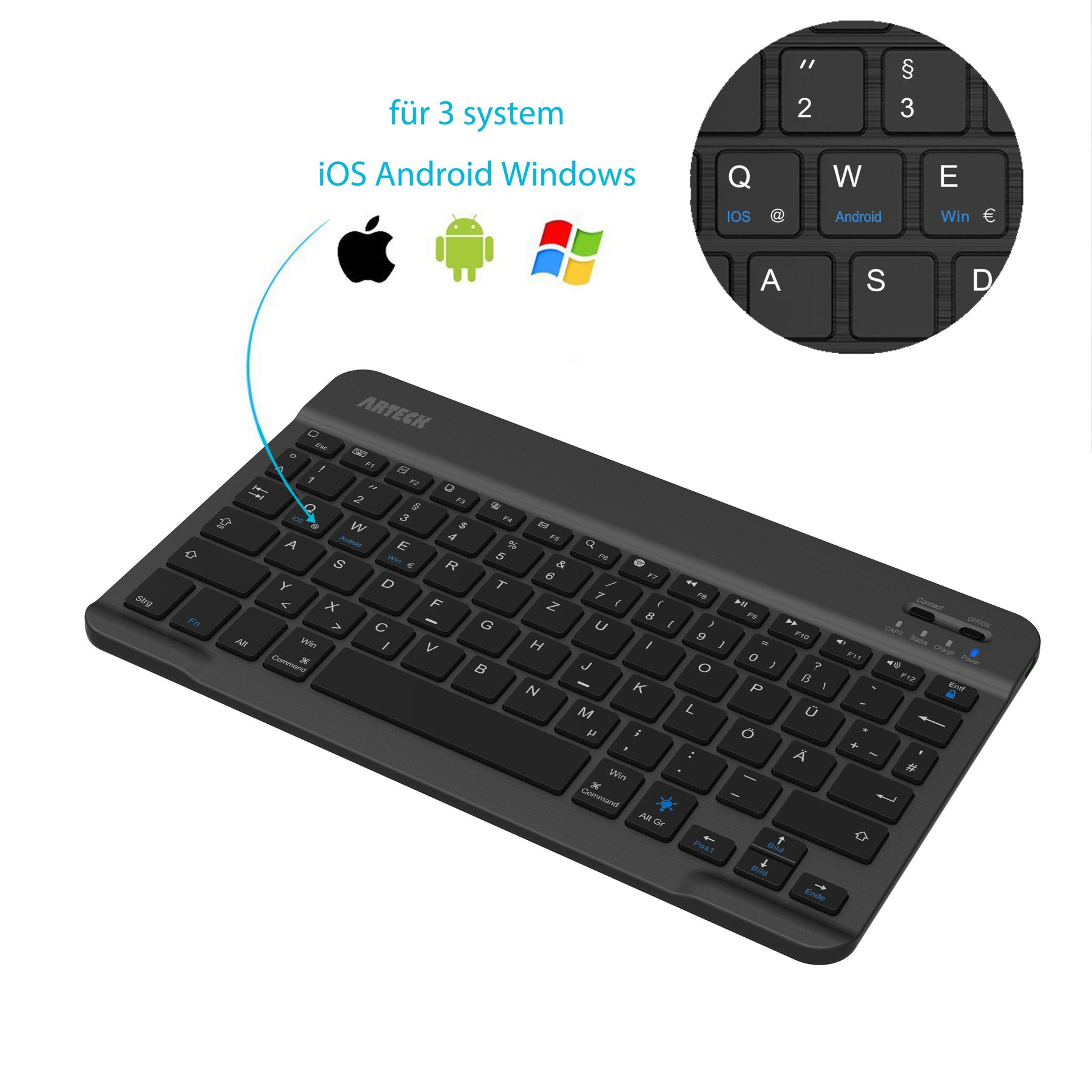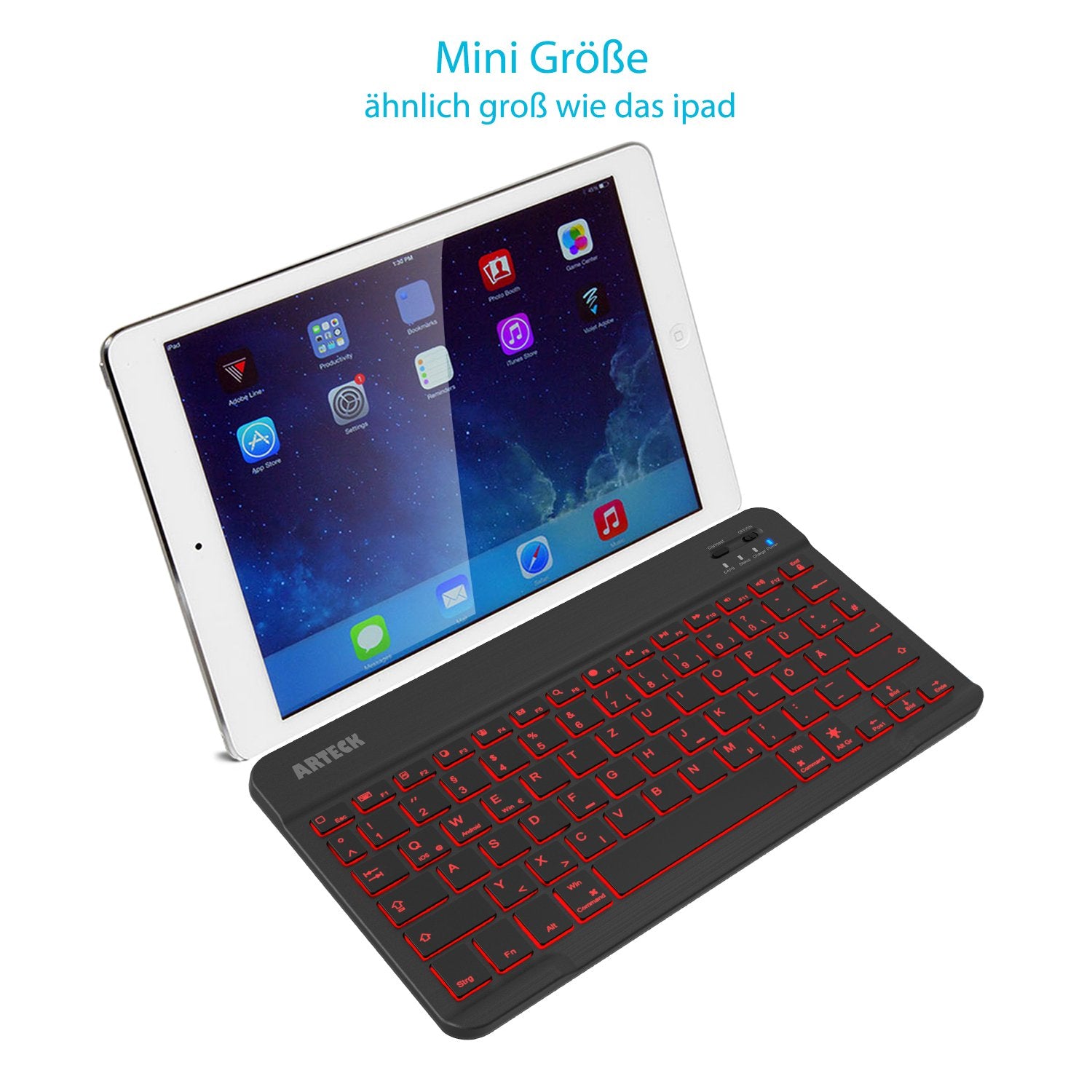 Arteck Bluethooth QWERTZ Deutsche Wireless Tastatur mit 7 Farben Ultraleicht und dünn Tragbare Kabellose, für iPad Pro, Air, Mini, Android, MacOS, Windows, Tablets, PC, Smartphone