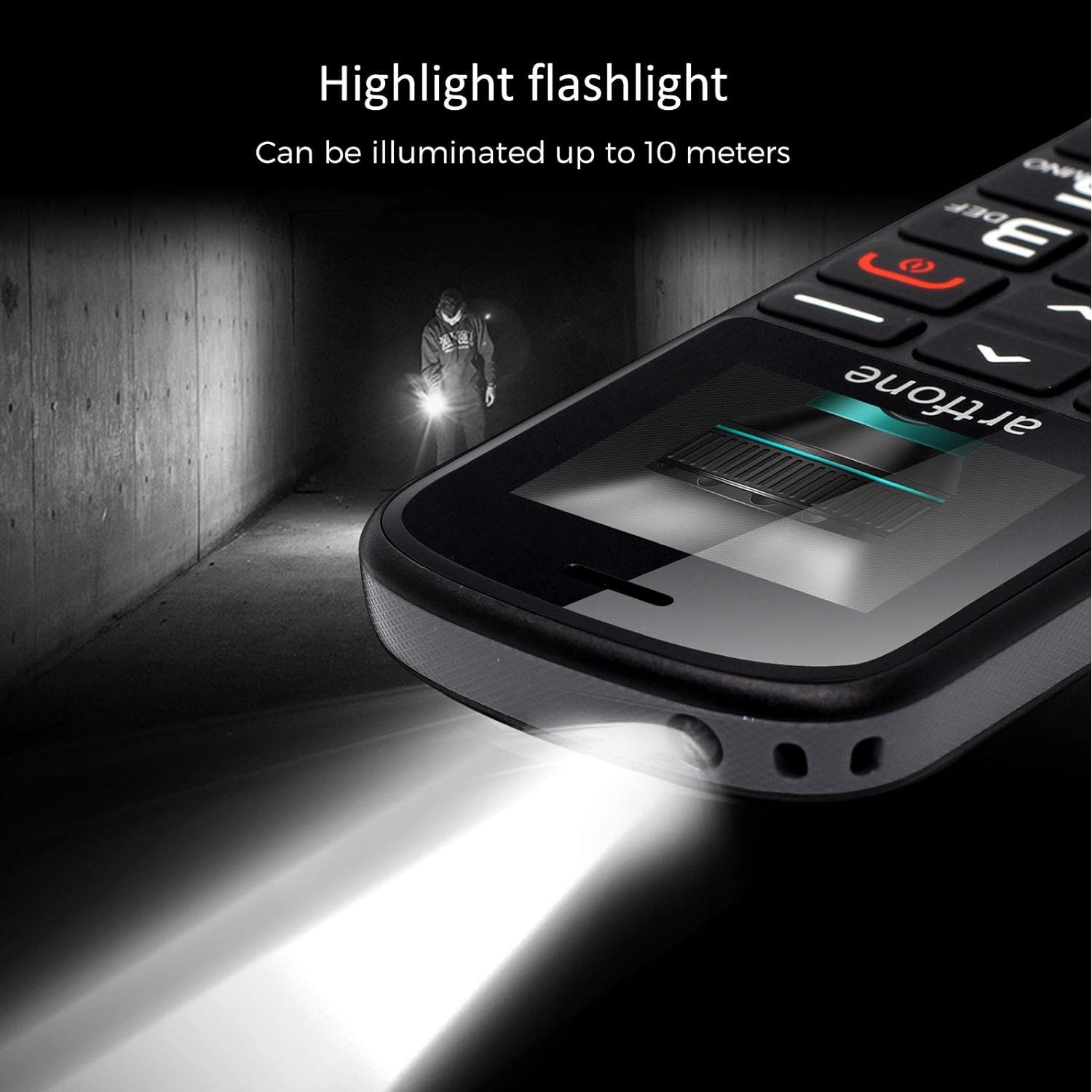 - ☛【5 SOS-Anrufsfunktionen & Taschenlampe】 Artfone kann 5 SOS-Anrufnummern einstellen. Wenn Sie sich in einem Notfall befinden, können Sie den Nottaste benutzen, um sofort Hilfe von Ihrer Familie und Ihren Freunden zu erhalten.Taschenlampe-Taste an der rechten Seite, schieben Sie es einfach nach oben, damit Sie im Dunkeln besser sehen können.