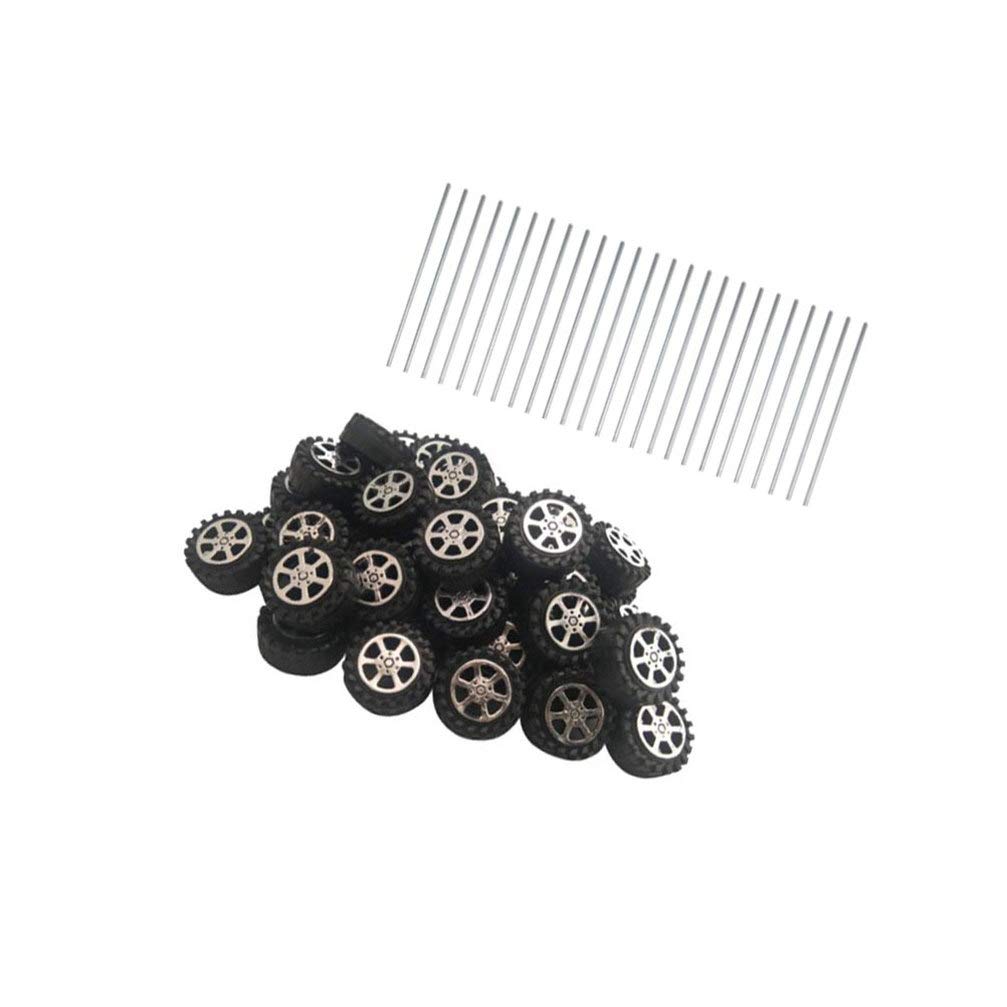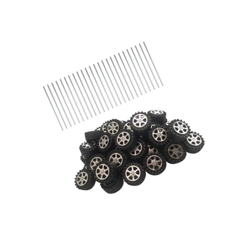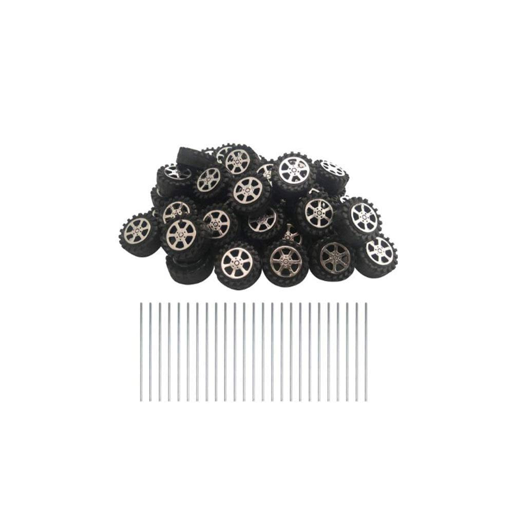 Dies ist ein Satz von 50-tlg. kleinen Rädern und 25-tlg. Achszubehör, das für das Heimwerkerhandwerk hergestellt wird. Premium-Kunststoff und Eisenmaterial macht es langlebig und nicht Verformung. Tolles Zubehör für Autospielzeug oder andere Bastelmodelle.